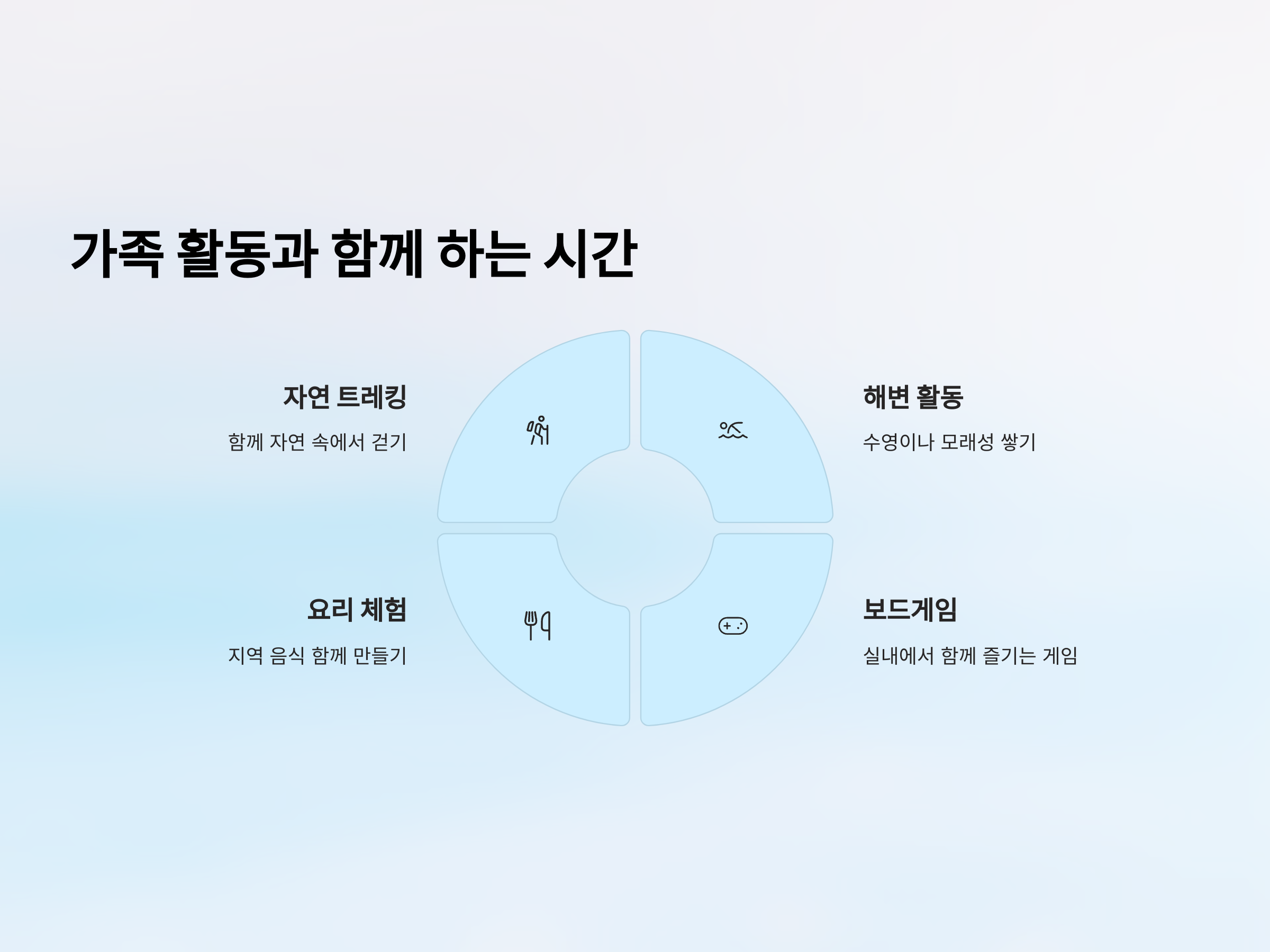 가족과의 여행에서 가장 중요한 것은 바로 함께하는 시간입니다. 각자가 바쁘게 돌아가는 일상에서 벗어나 여행지에서만큼은 온전히 서로에게 집중할 수 있는 기회를 갖는 것이죠. 따라서 여행 중에는 다양한 가족 활동을 계획하는 것이 좋습니다.