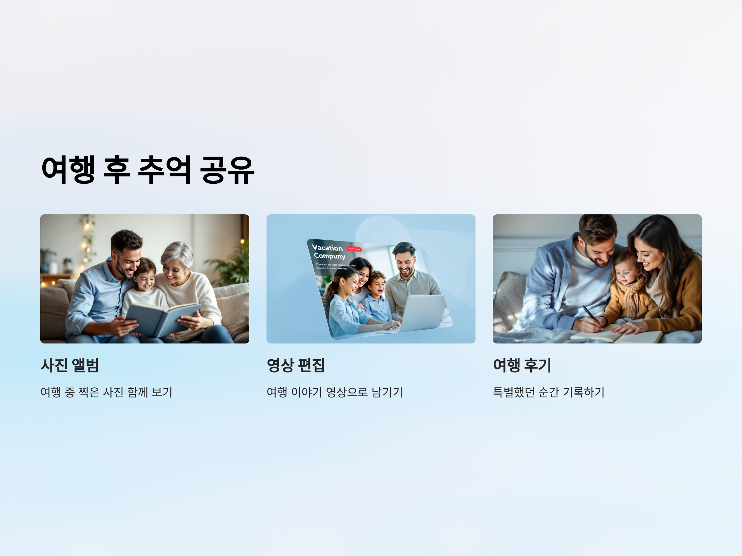 여행을 마친 후에는 가족 간의 추억을 공유하는 시간을 가져보세요. 여행 중 찍은 사진을 함께 보며 그때의 기억을 되새기거나, 여행에서의 특별한 순간을 이야기하는 것만으로도 서로의 관계가 더욱 깊어집니다. 이때, 가족 전원이 참여할 수 있는 활동으로는 여행 후기 작성하기, 사진 앨범 만들기, 여행 이야기를 모아 영상으로 편집하는 것 등이 있습니다.