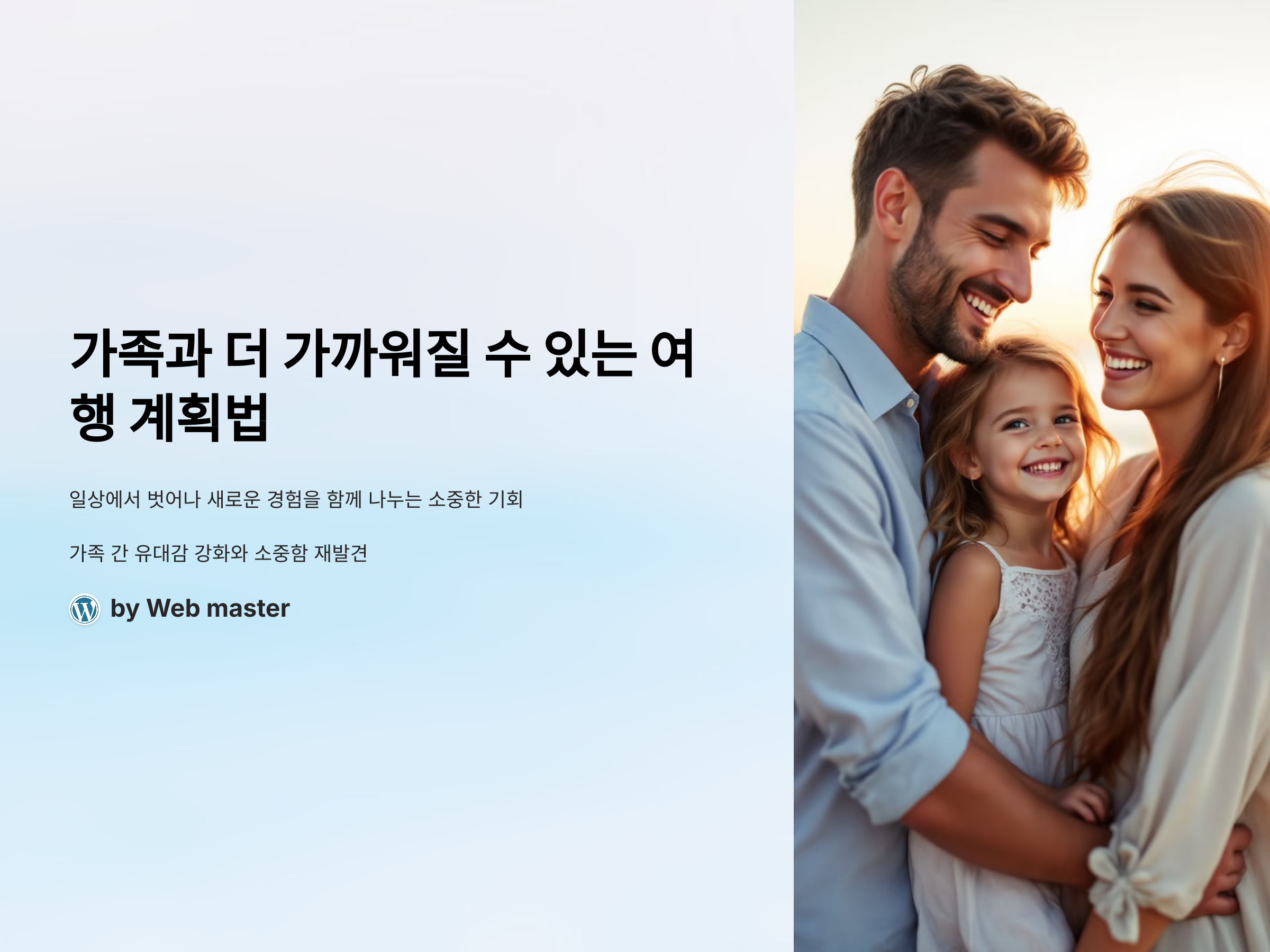 가족과의 여행은 일상에서 벗어나 새로운 경험을 함께 나누는 소중한 기회입니다. 이 여행을 통해 가족 간의 유대감을 강화하고, 서로의 소중함을 재발견할 수 있습니다. 하지만 단순히 여행을 떠나는 것만으로는 진정한 관계 강화를 이루기 어렵습니다. 여행을 잘 계획하고, 모든 가족 구성원이 즐겁고 의미 있는 시간을 보낼 수 있도록 준비하는 것이 중요합니다.