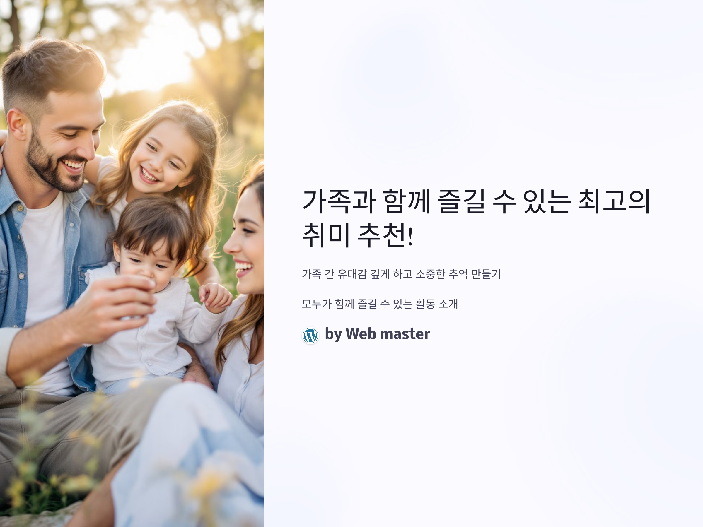 가족과 함께하는 취미는 단순한 시간 보내기가 아니라, 서로의 관계를 더욱 돈독히 하고 즐거운 기억을 만드는 방법입니다. 함께 활동하면서 서로를 이해하고 협력하는 과정은 큰 의미를 지니며, 나중에 돌아보았을 때 그 소중한 순간들이 더 큰 가치를 가질 것입니다. 위에서 소개한 활동들을 통해 가족 간의 소중한 시간을 보내고, 더욱 가까워질 수 있는 기회를 만들어 보세요.