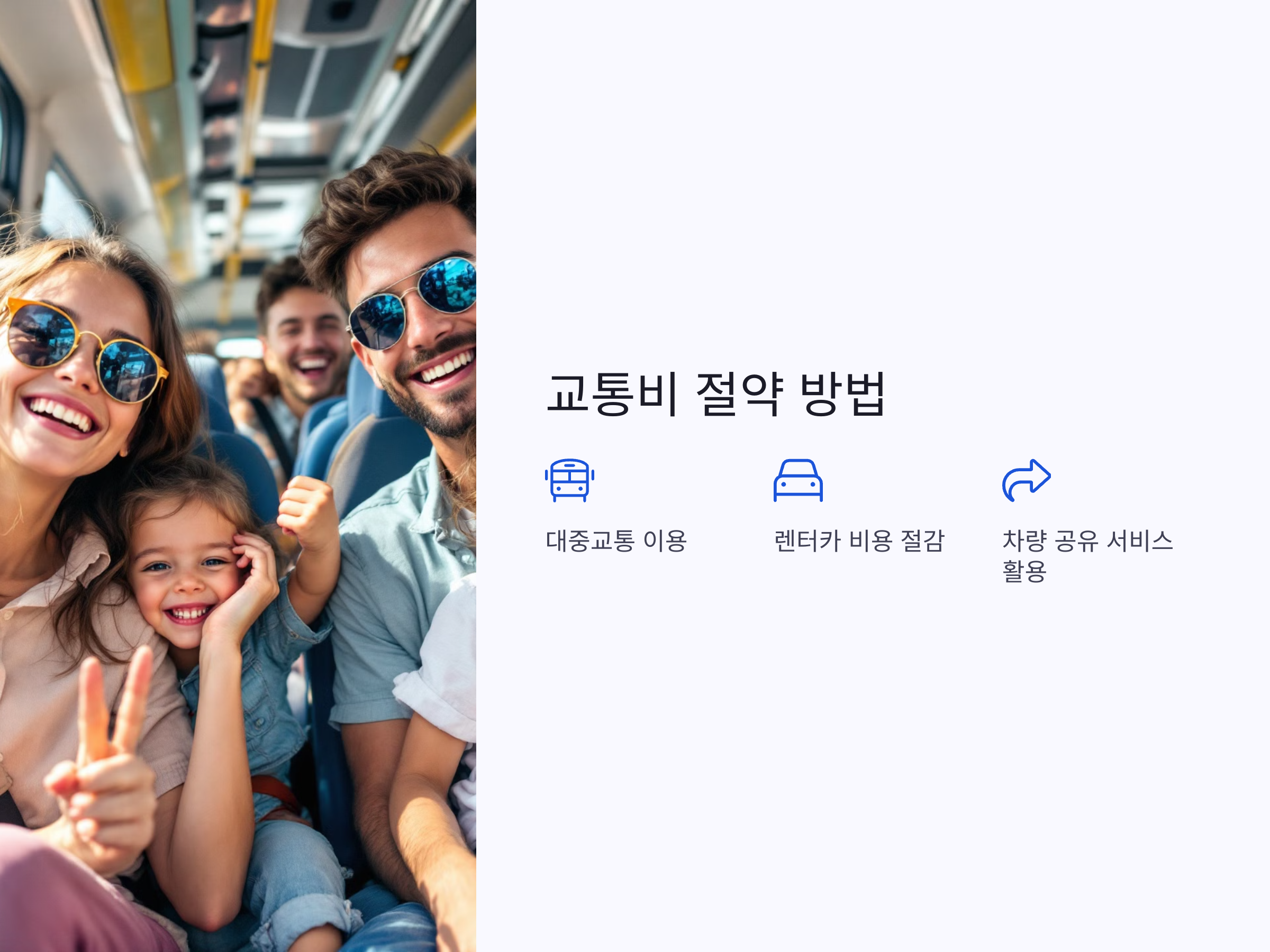 가족 여행에서 교통비는 상당한 비중을 차지하는 부분입니다. 하지만 대중교통을 적절히 활용하거나 차량 공유 서비스를 이용하면 교통비를 크게 줄일 수 있습니다.