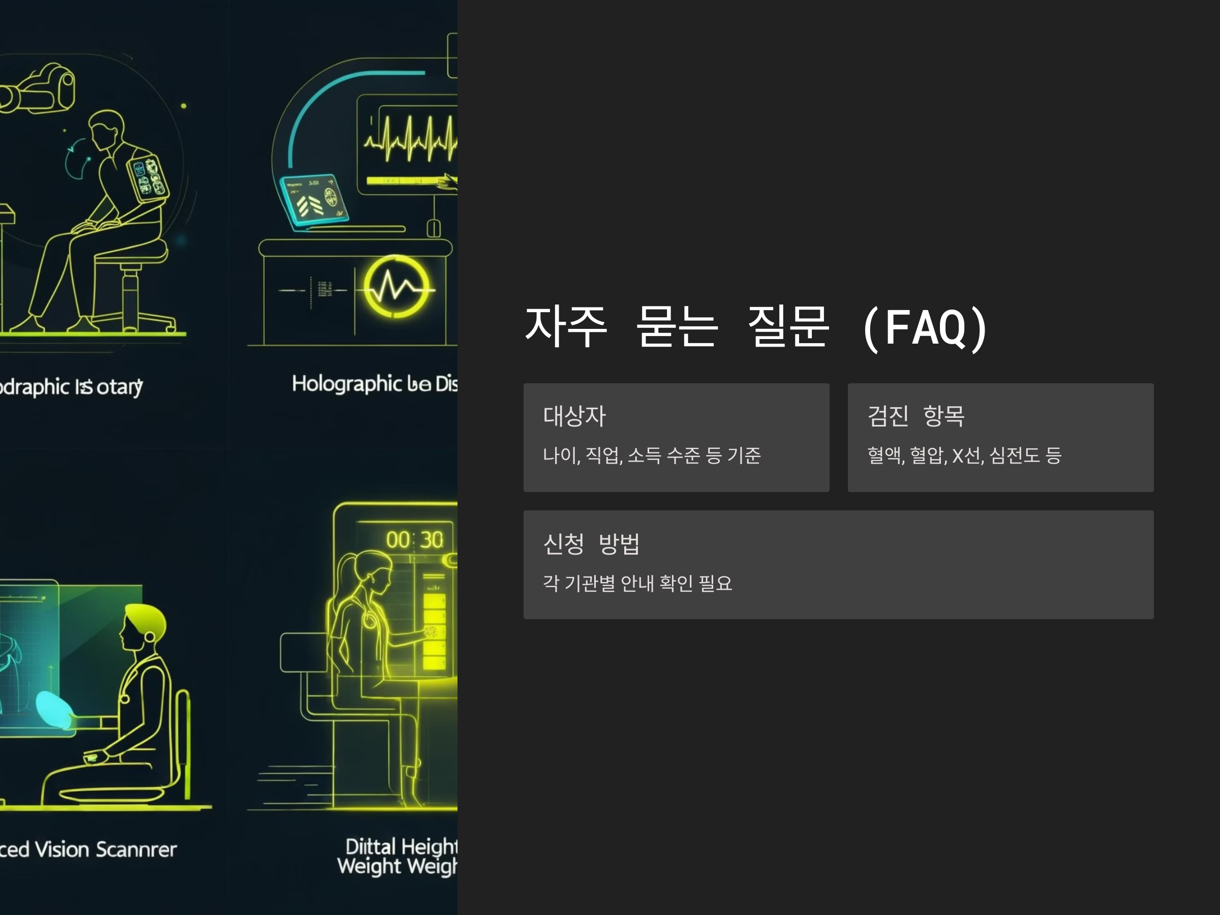 또한, 건강보험공단에서는 국민건강보험 가입자를 대상으로 일정 주기로 무료 검진을 제공하고 있으며, 사업장 근로자들을 위한 직장 건강검진 프로그램도 운영하고 있습니다.