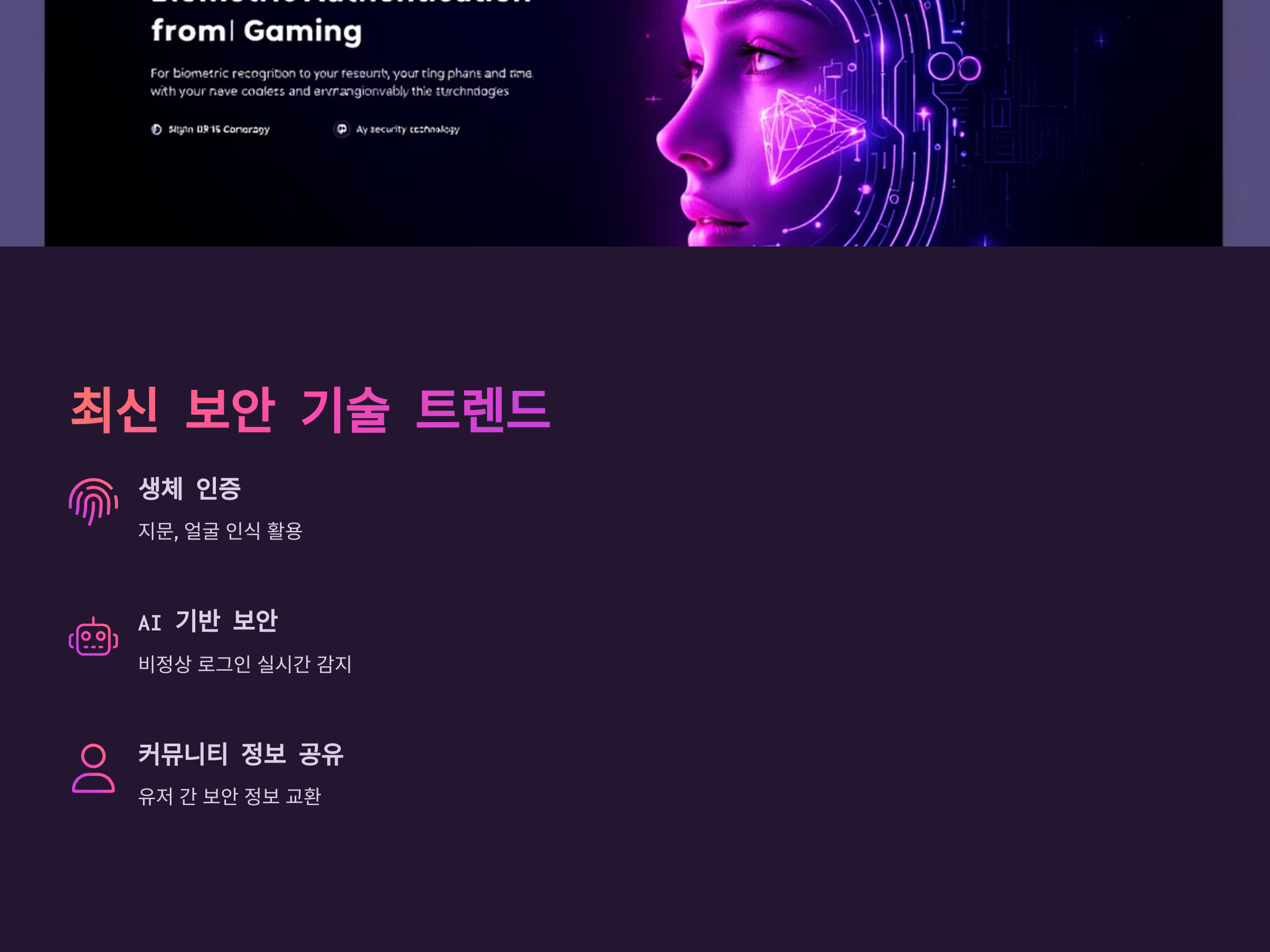 최근에는 생체 인증 기술(지문 인식, 얼굴 인식 등)을 활용한 로그인 방법이 많이 사용되고 있습니다. 이 기술을 통해 계정의 보안을 더욱 강화할 수 있습니다.