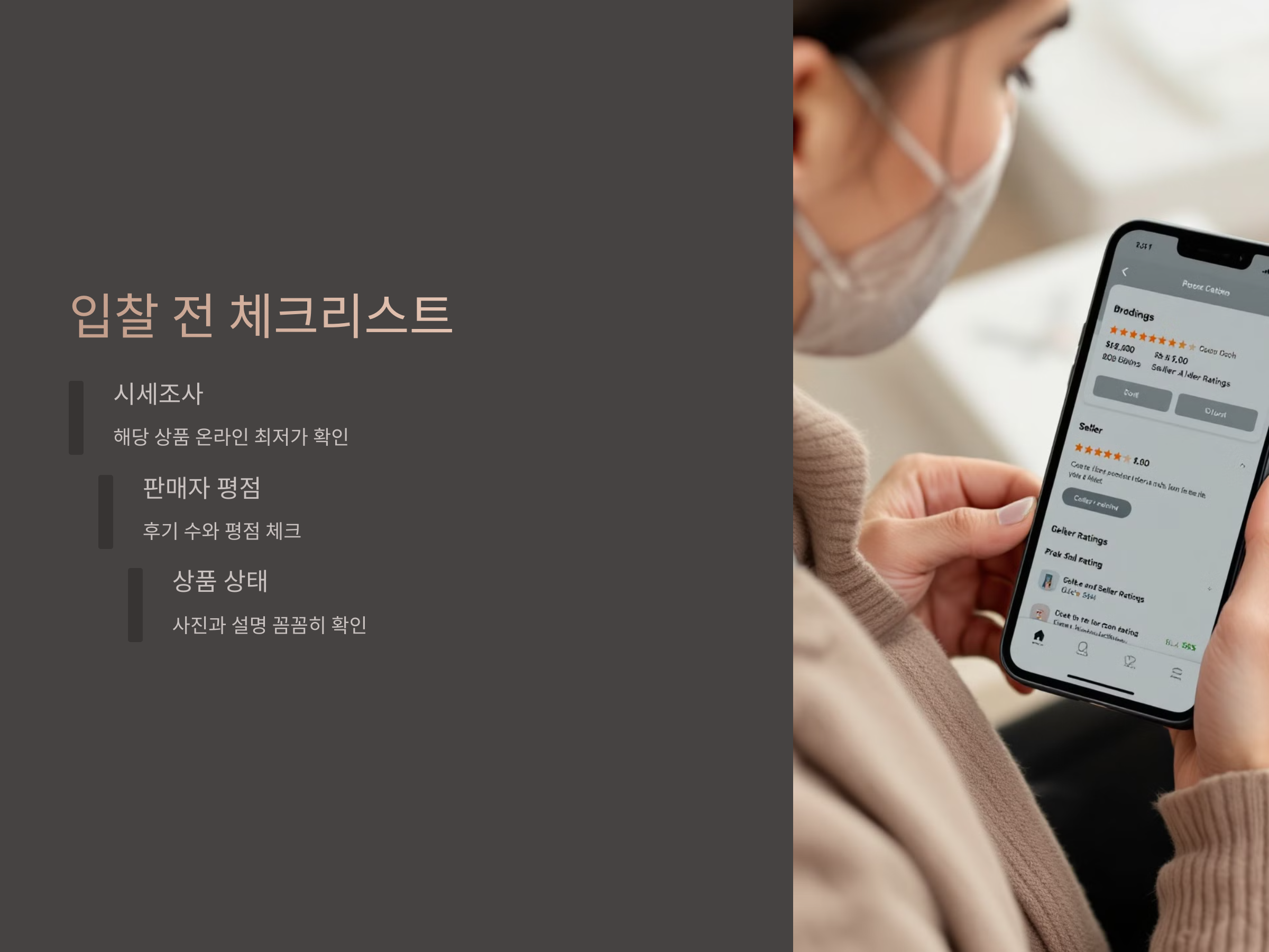 - 판매자 평점: 플랫폼에 따라 판매자 후기를 체크할 수 있습니다. 후기 수와 평점이 일정 수준 이상인 셀러와 거래하는 것이 안전합니다.