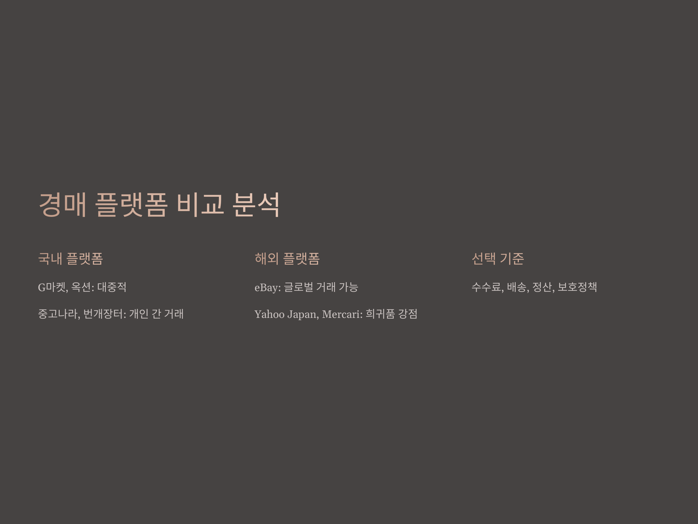 각 플랫폼마다 수수료, 배송 방식, 정산 주기, 소비자 보호 정책이 다르기 때문에 비교 후 자신에게 맞는 사이트를 선택하는 것이 현명합니다. 예를 들어, 옥션은 자동입찰 시스템이 정교하며 국내 물류 기반이 튼튼한 반면, eBay는 해외 셀러 비중이 높고 글로벌 거래가 가능하다는 장점이 있습니다.
