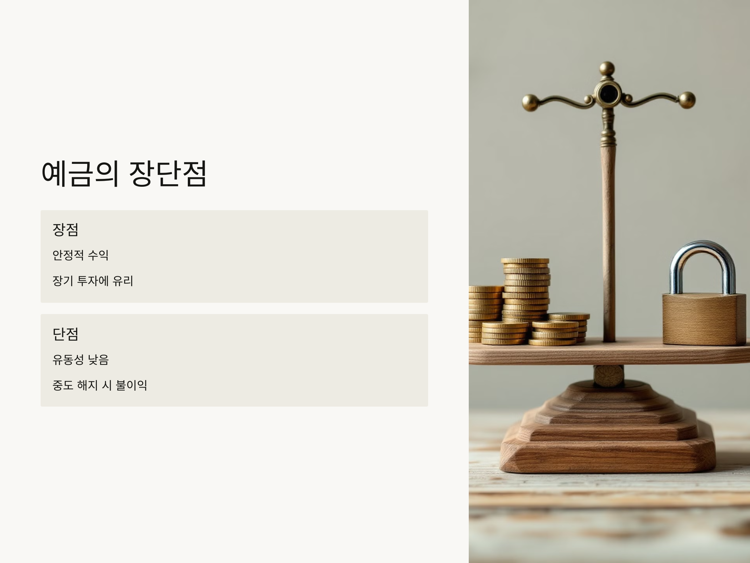 고금리 예금과 적금에는 각기 다른 장단점이 존재합니다. 예금의 경우, 한 번에 큰 금액을 예치하고 안정적인 수익을 기대할 수 있다는 큰 장점이 있습니다. 특히, 예금은 만기가 길어질수록 금리가 높아지는 경향이 있어, 장기적인 투자를 원하는 사람들에게 유리합니다. 예금은 주로 단기적인 이자 수익을 얻기 보다는 장기적인 안전성을 추구하는 경우에 선택되곤 합니다.