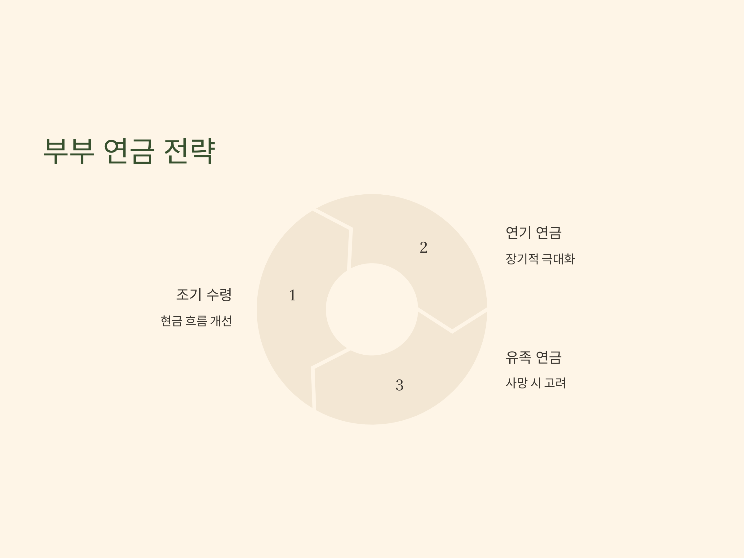 부부가 함께 국민연금을 수급할 경우, 연금액을 최적화하는 전략을 고려해야 합니다. 한쪽 배우자가 연금을 일찍 받기 시작하면 가계의 현금 흐름을 개선할 수 있고, 다른 배우자는 연기연금을 선택해 장기적으로 연금액을 극대화할 수 있습니다.