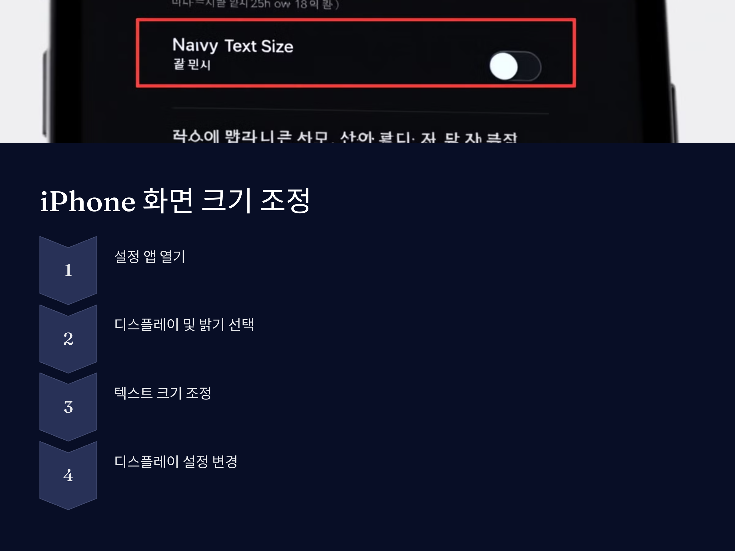 아이폰 역시 화면 크기와 텍스트 크기를 손쉽게 조정할 수 있습니다. 아래 방법을 참고해 주세요.