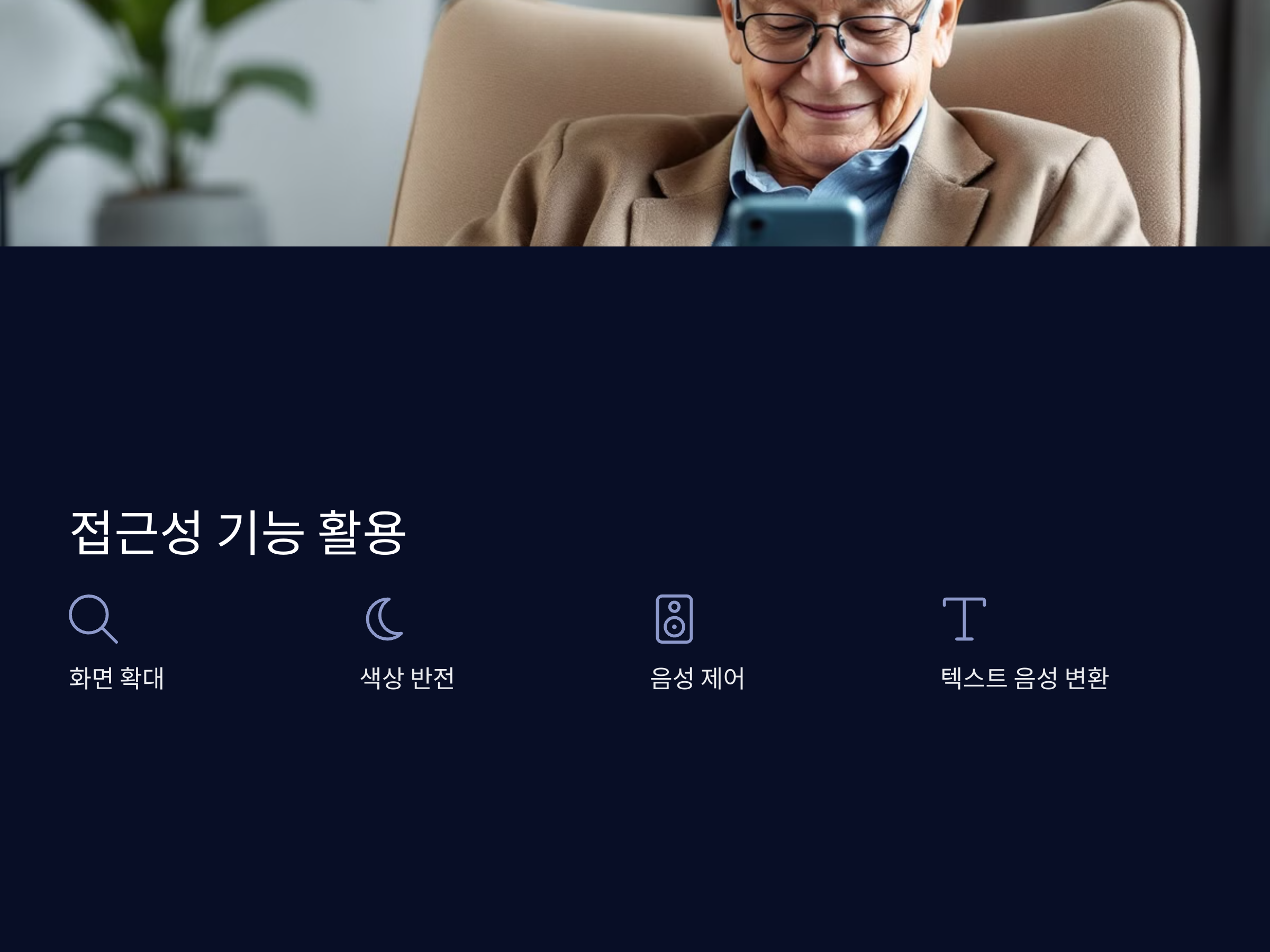 스마트폰에는 고령자나 시력이 약한 분들을 위한 다양한 접근성 기능들이 제공됩니다. 이 기능을 활용하면 보다 쉽게 스마트폰을 사용할 수 있습니다.