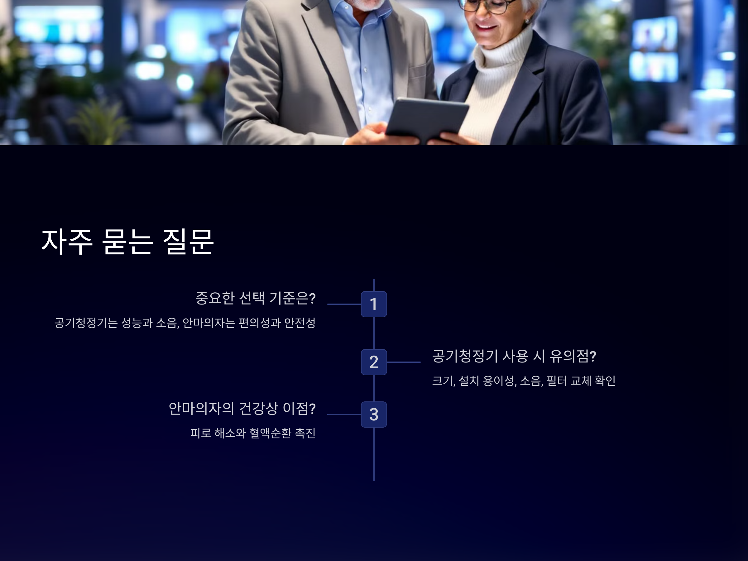 공기청정기와 안마의자를 고를 때 가장 중요한 점은 무엇인가요?