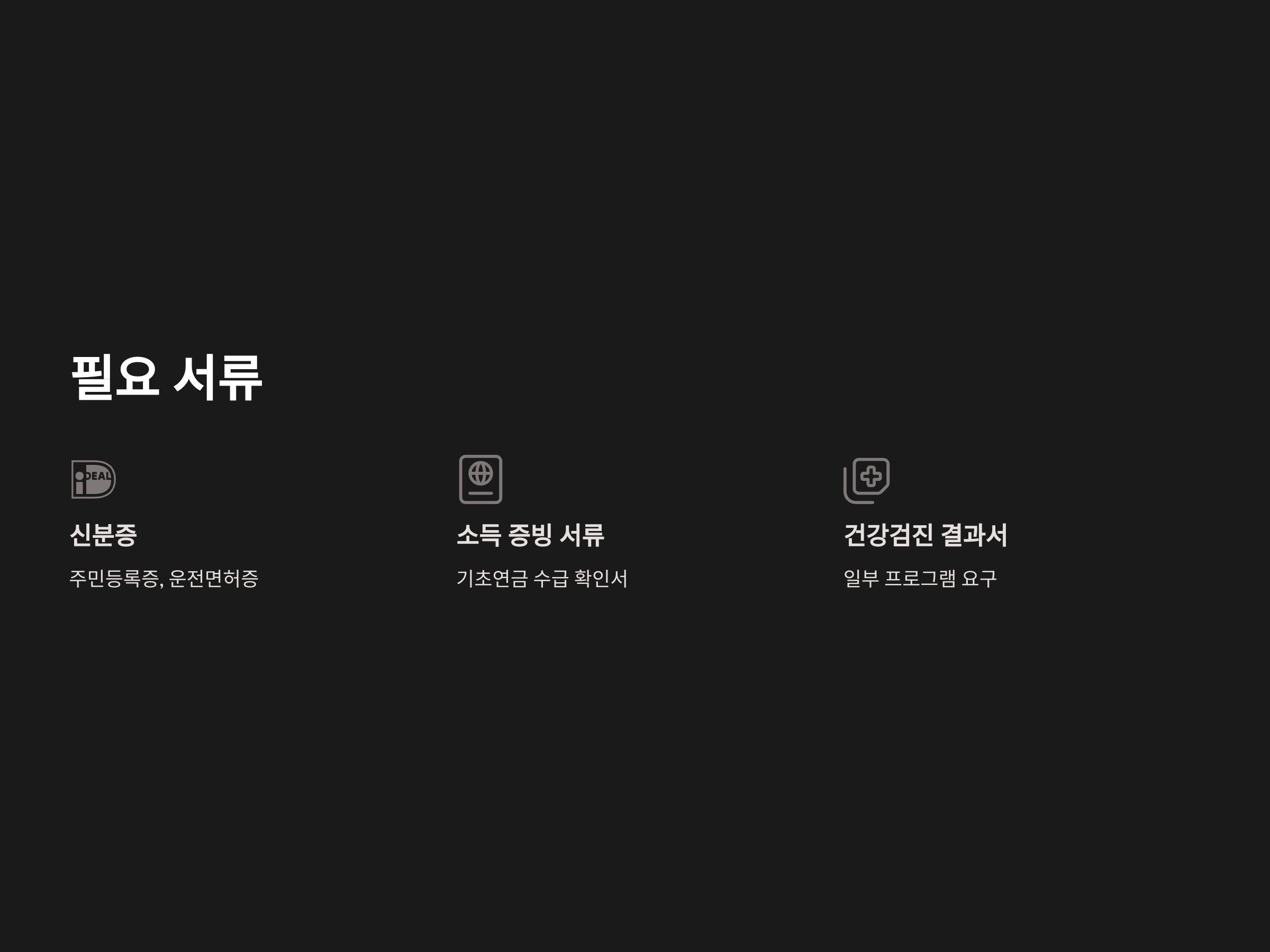 - 소득 증빙 서류: 소득이 일정 기준 이하임을 증명할 수 있는 서류(예: 기초연금 수급 확인서)