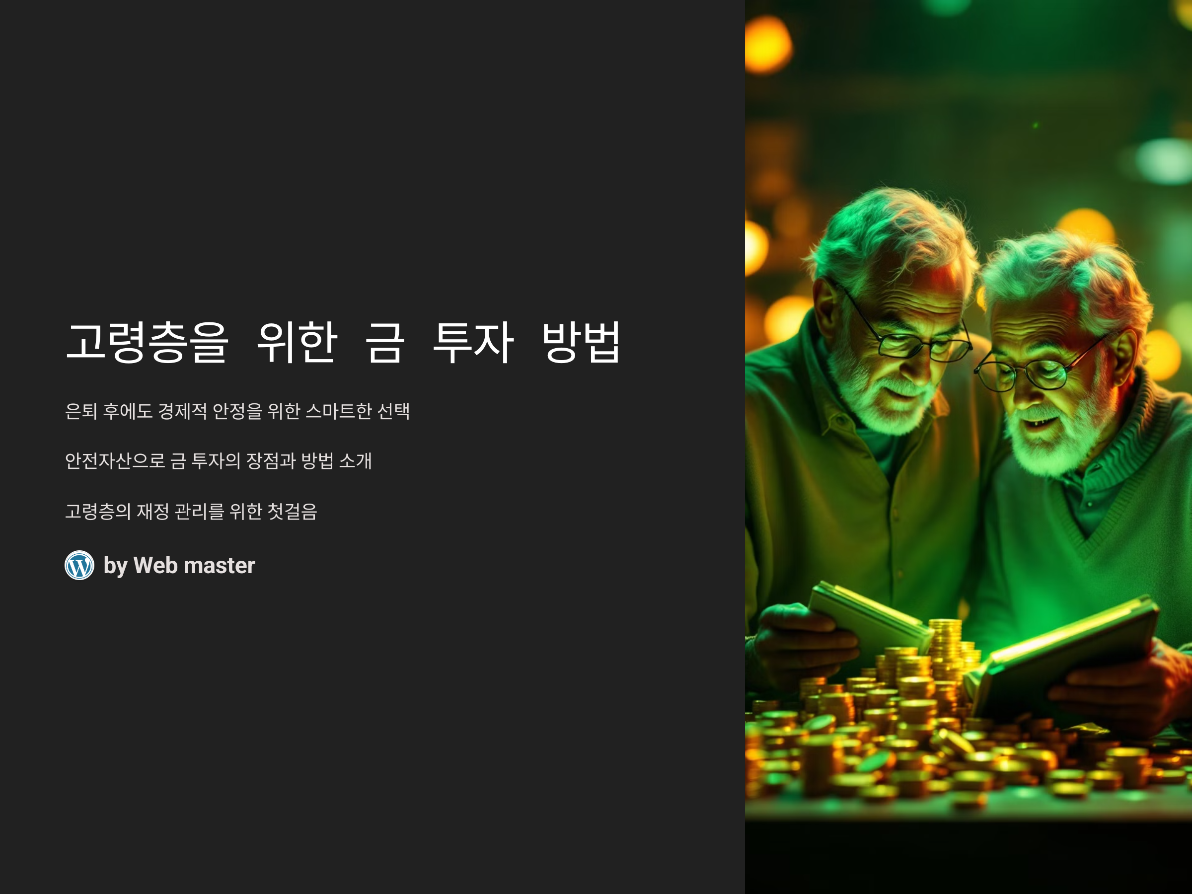 따라서 이 글에서는 고령층이 쉽게 투자할 수 있는 금 투자 방법을 소개하고, 금 투자의 장점과 함께 어떻게 안전하게 금 자산을 관리할 수 있을지 알아보겠습니다. 금에 대한 기초 지식부터 투자 방법까지, 알아두면 유용한 팁들을 준비했습니다. 고령층의 경제적 안정을 위해 지금 바로 시작해 보세요!