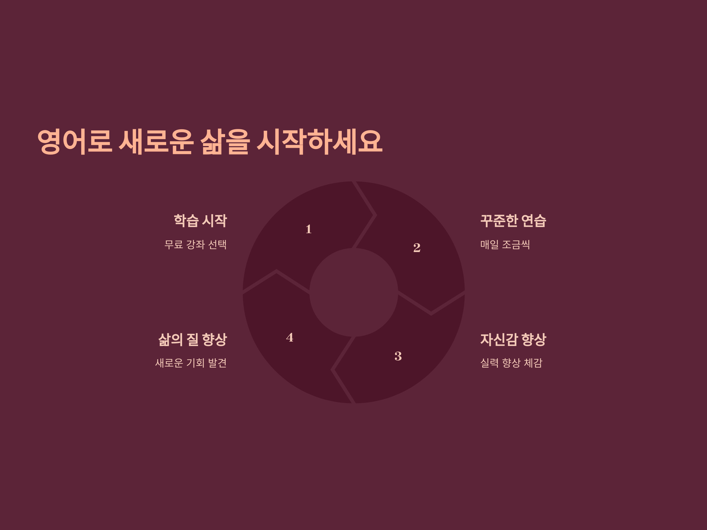 영어 학습을 시작하는 것은 지금이 가장 좋은 시기입니다. 한 걸음씩 영어의 세계로 들어가면서 삶의 질을 높이고, 새로운 기회를 찾아보세요.