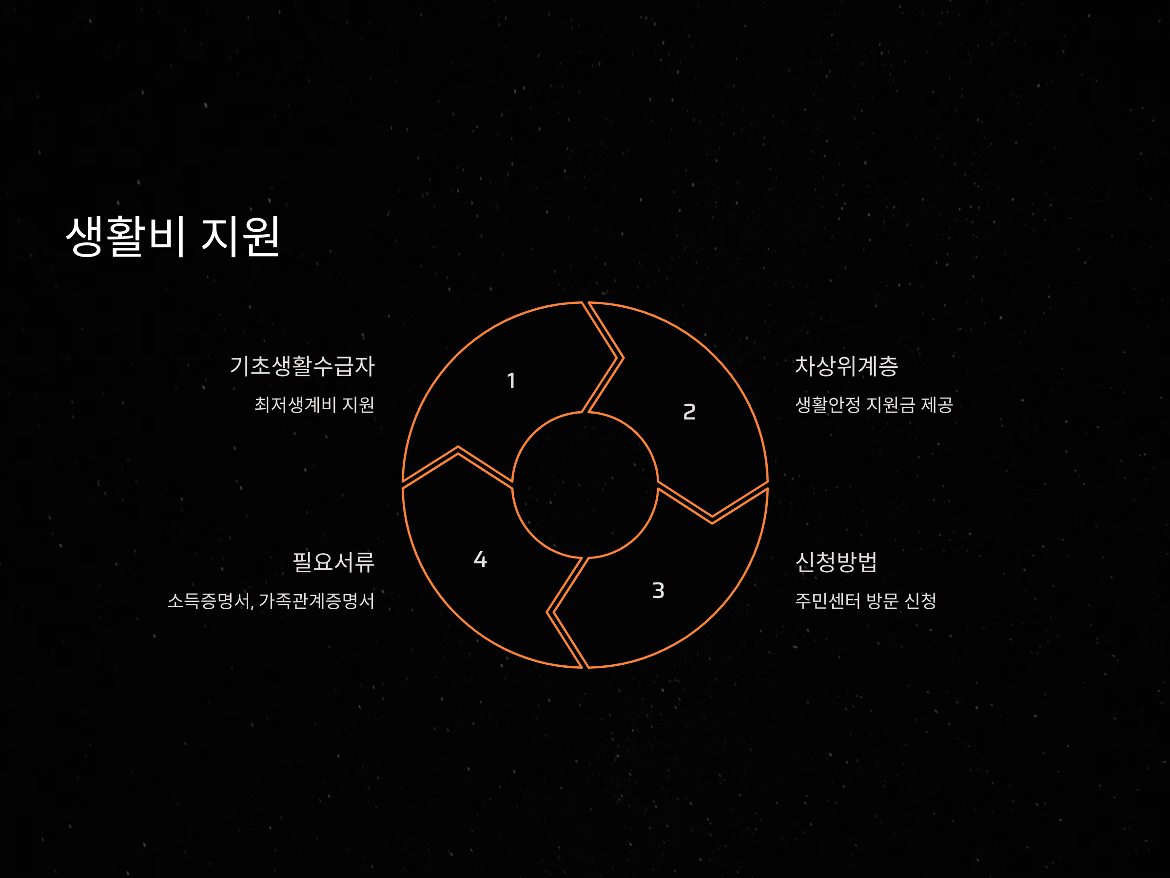 신청 방법: 생활비 지원은 주거지 관할 주민센터에서 신청할 수 있으며, 신청 시 소득 증명 서류나 가구 구성원의 정보를 제출해야 합니다.