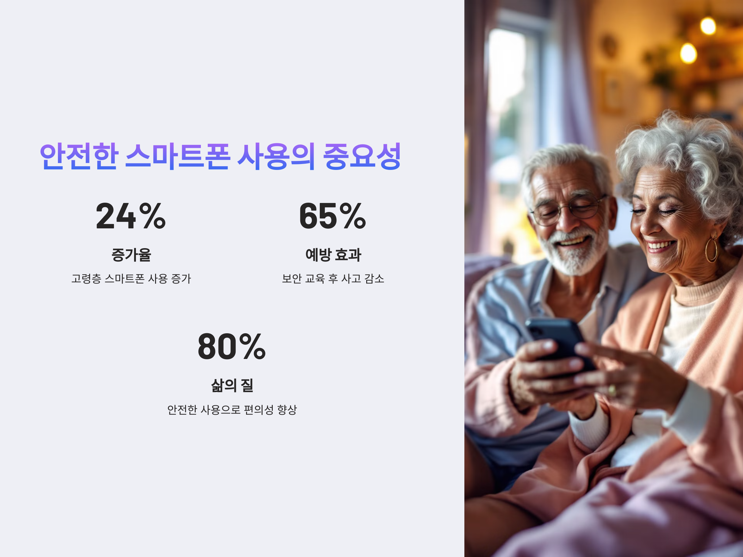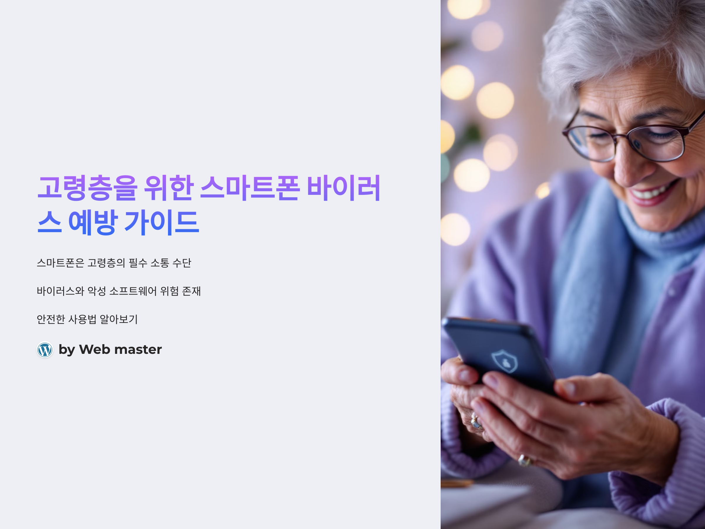 스마트폰은 이제 모든 연령층의 필수 기기가 되었지만, 특히 고령층에게는 중요한 소통 수단이자 정보 제공의 역할을 합니다. 그러나 스마트폰을 사용할 때 바이러스나 악성 소프트웨어에 노출될 위험도 존재합니다. 고령층이 쉽게 실수할 수 있는 부분들을 이해하고, 이를 예방하는 방법을 제시함으로써 더 안전하고 편리한 스마트폰 사용을 돕고자 합니다. 본 가이드를 통해 스마트폰을 안전하게 사용하는 방법을 알아보겠습니다.