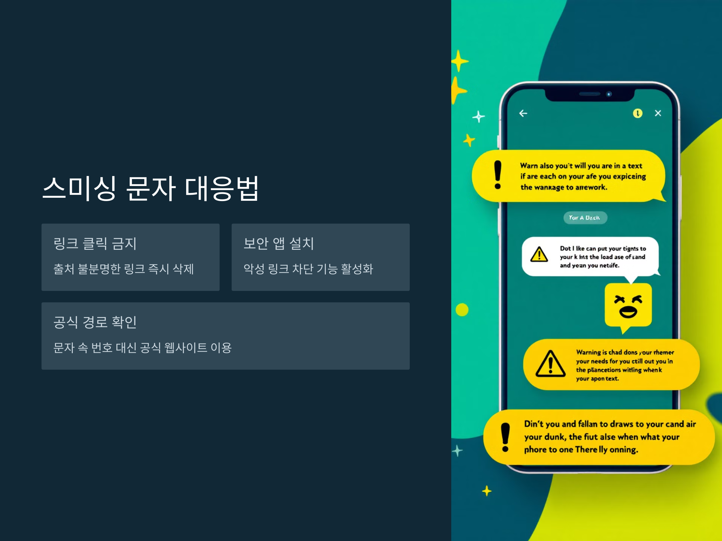 - 스마트폰 보안 앱을 설치하여 악성 링크 차단 기능을 활성화합니다.