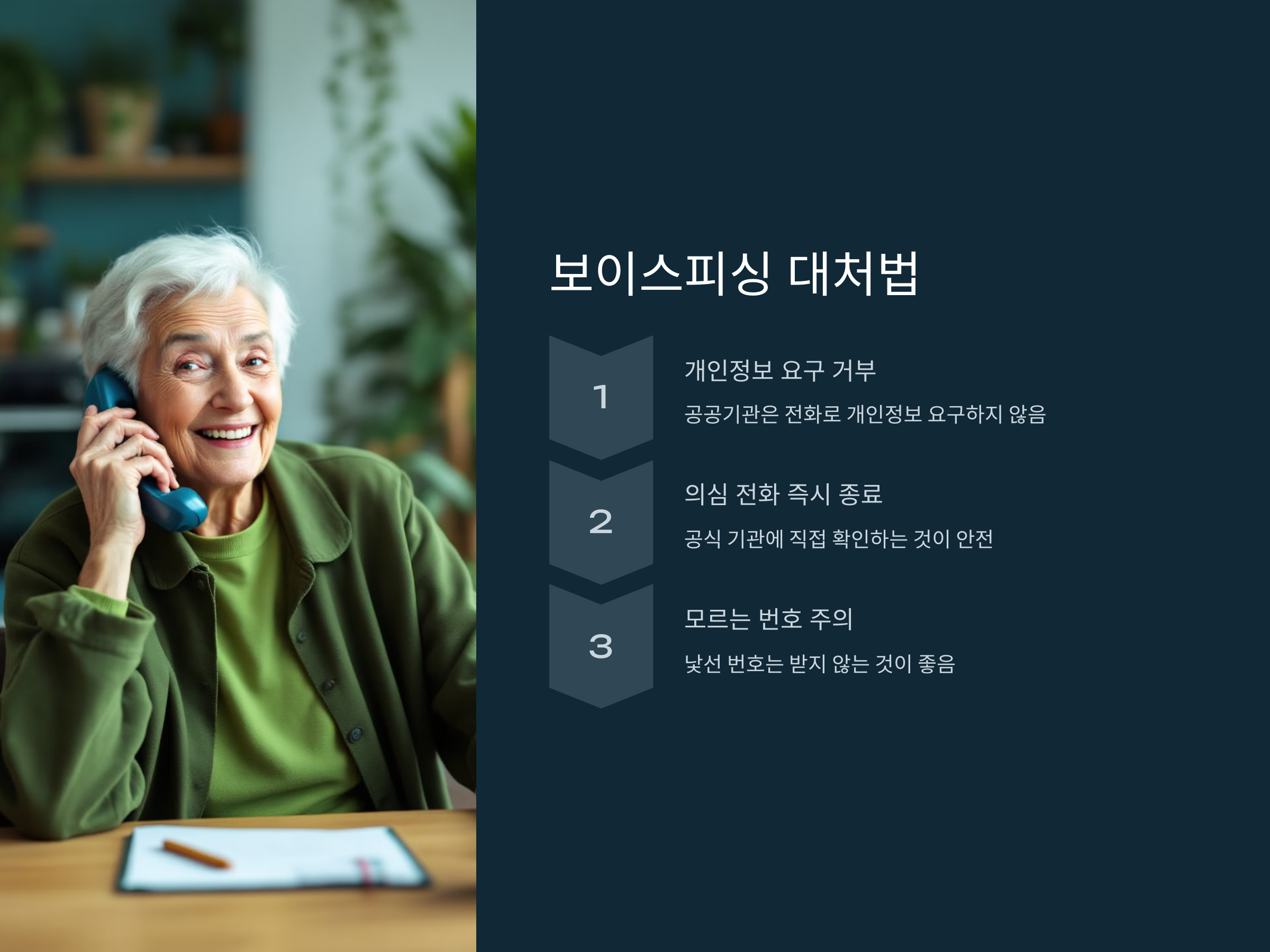- 공공기관 및 금융기관은 전화로 개인정보를 요구하지 않음: 경찰, 검찰, 은행 직원이라며 계좌 정보를 요구하면 100% 사기입니다.