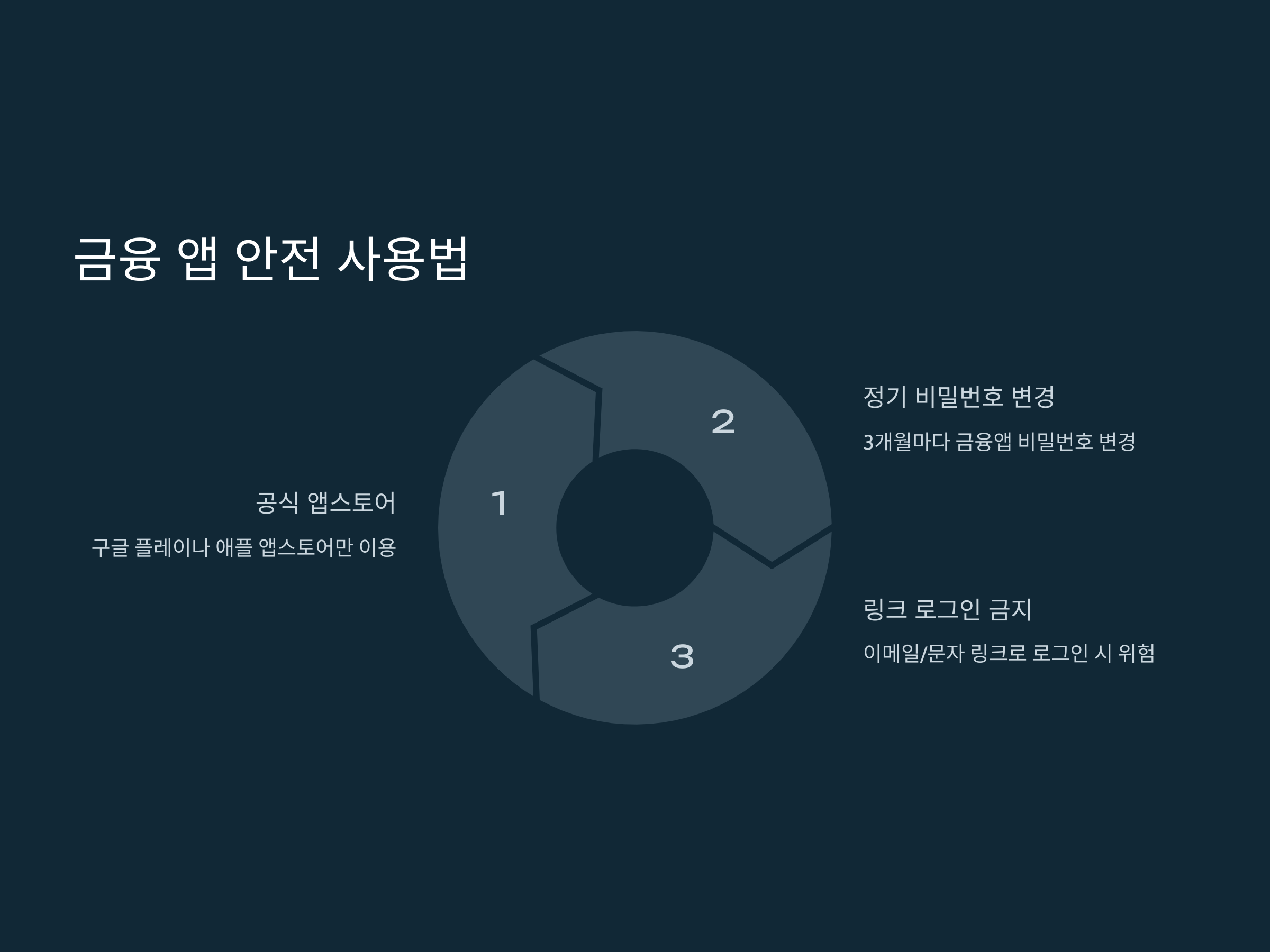 - 공식 앱스토어에서만 금융 앱 설치: 구글 플레이스토어나 애플 앱스토어에서 제공하는 공식 금융 앱만 설치해야 합니다.