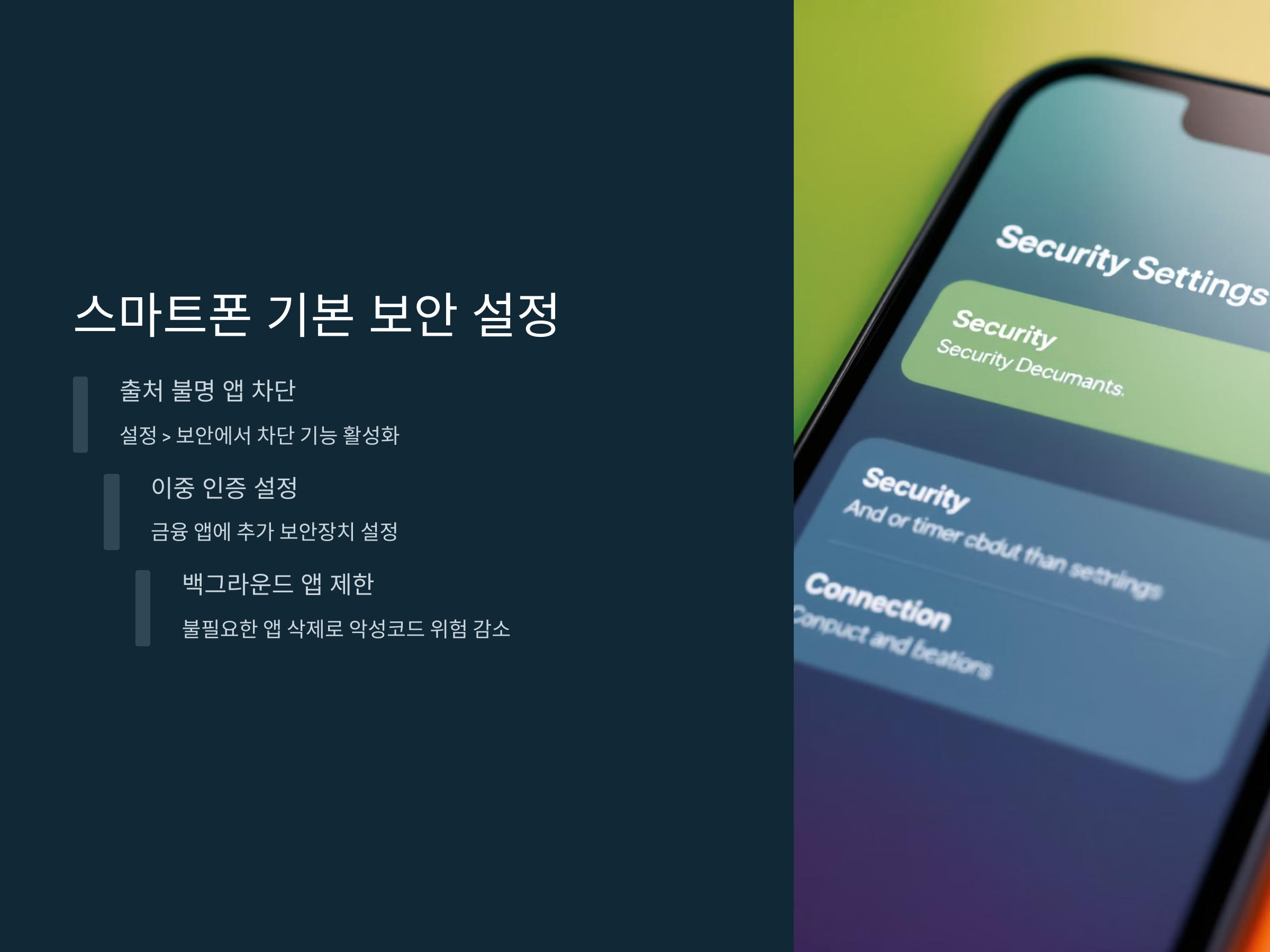 - 은행 계좌 및 금융 앱 비밀번호 즉시 변경: 추가적인 피해를 방지하기 위해 보안 설정을 강화합니다.