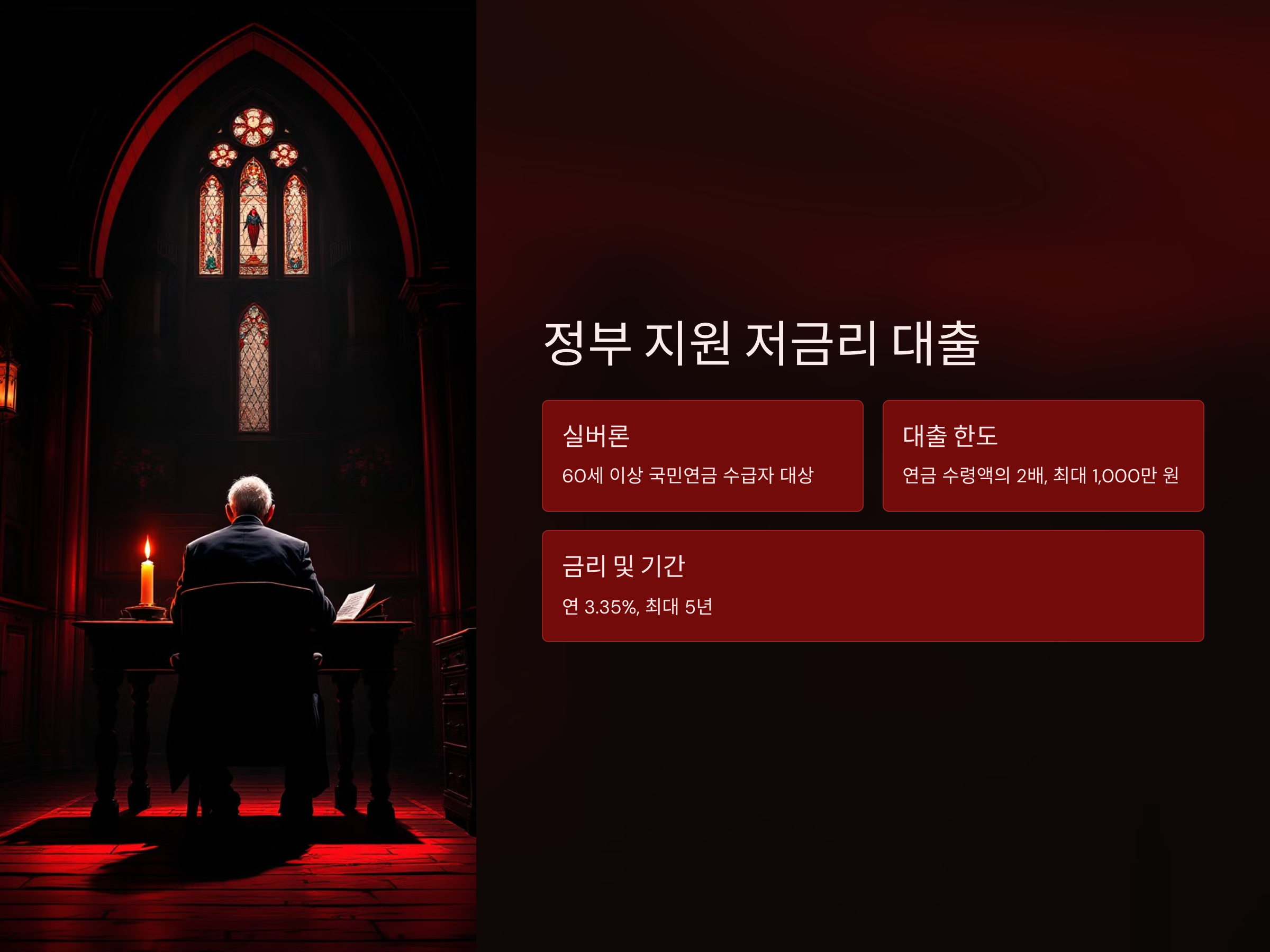 정부는 고령층의 경제적 안정을 위해 다양한 저금리 대출 상품을 운영하고 있습니다. 대표적인 상품으로는 국민연금공단에서 제공하는 '실버론'이 있습니다. 이 상품은 만 60세 이상의 국민연금 수급자를 대상으로 하며, 연간 연금 수령액의 2배 이내, 최대 1,000만 원까지 대출이 가능합니다. 대출 금리는 연 3.35%로 비교적 낮으며, 대출 기간은 최대 5년입니다. 신청은 국민연금공단을 통해 진행할 수 있습니다.