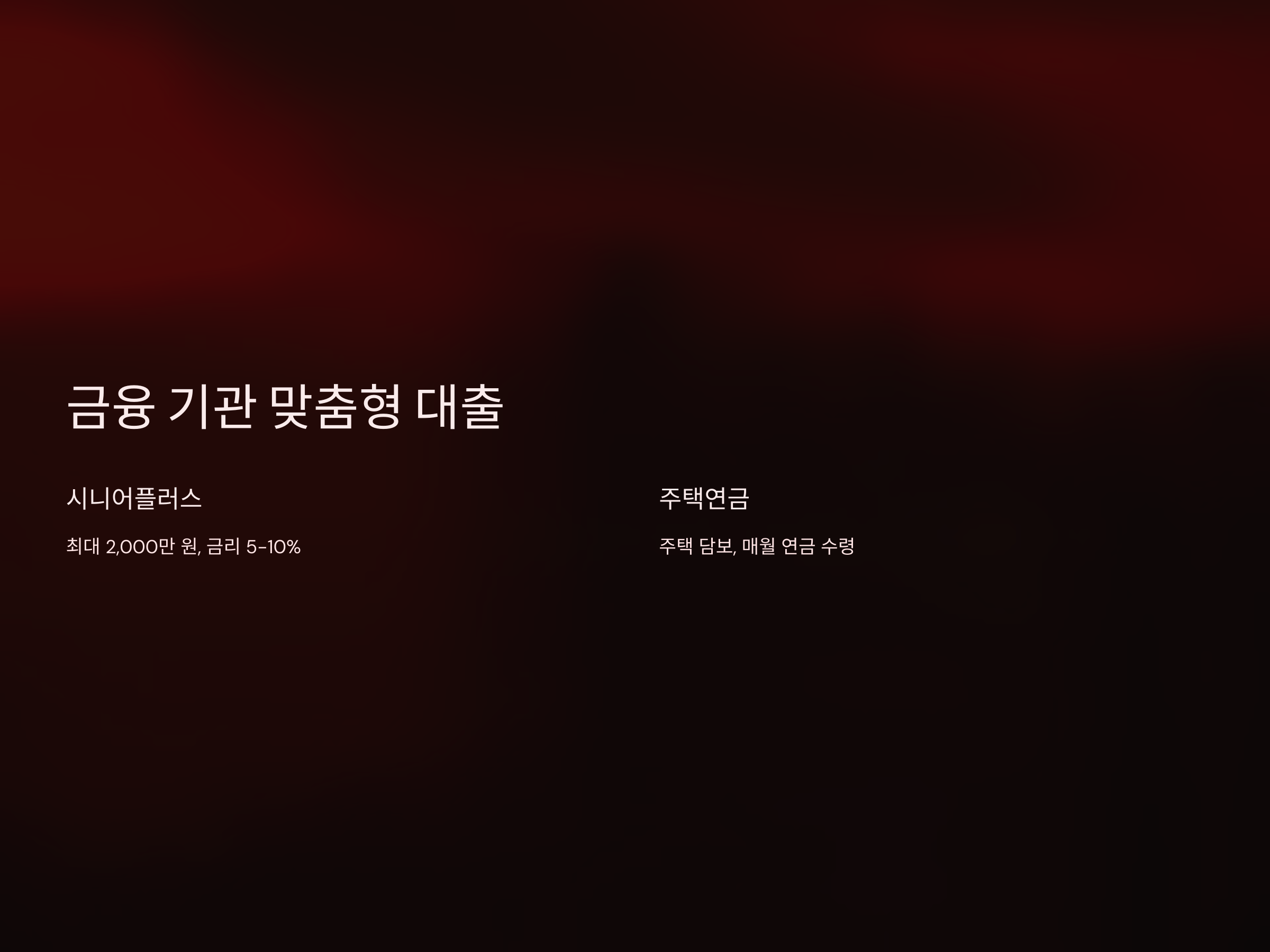 여러 금융 기관에서도 고령층을 위한 맞춤형 대출 상품을 제공하고 있습니다. 예를 들어, 우리은행의 '시니어플러스' 대출은 국민연금 또는 공무원연금 수급자를 대상으로 최대 2,000만 원까지 대출이 가능하며, 금리는 연 5%에서 10% 사이입니다. 또한, 주택을 소유한 고령자를 위한 주택연금 상품도 있습니다. 이는 주택을 담보로 매월 일정 금액을 연금 형태로 수령할 수 있는 상품으로, 안정적인 현금 흐름을 원하는 고령자에게 적합합니다.