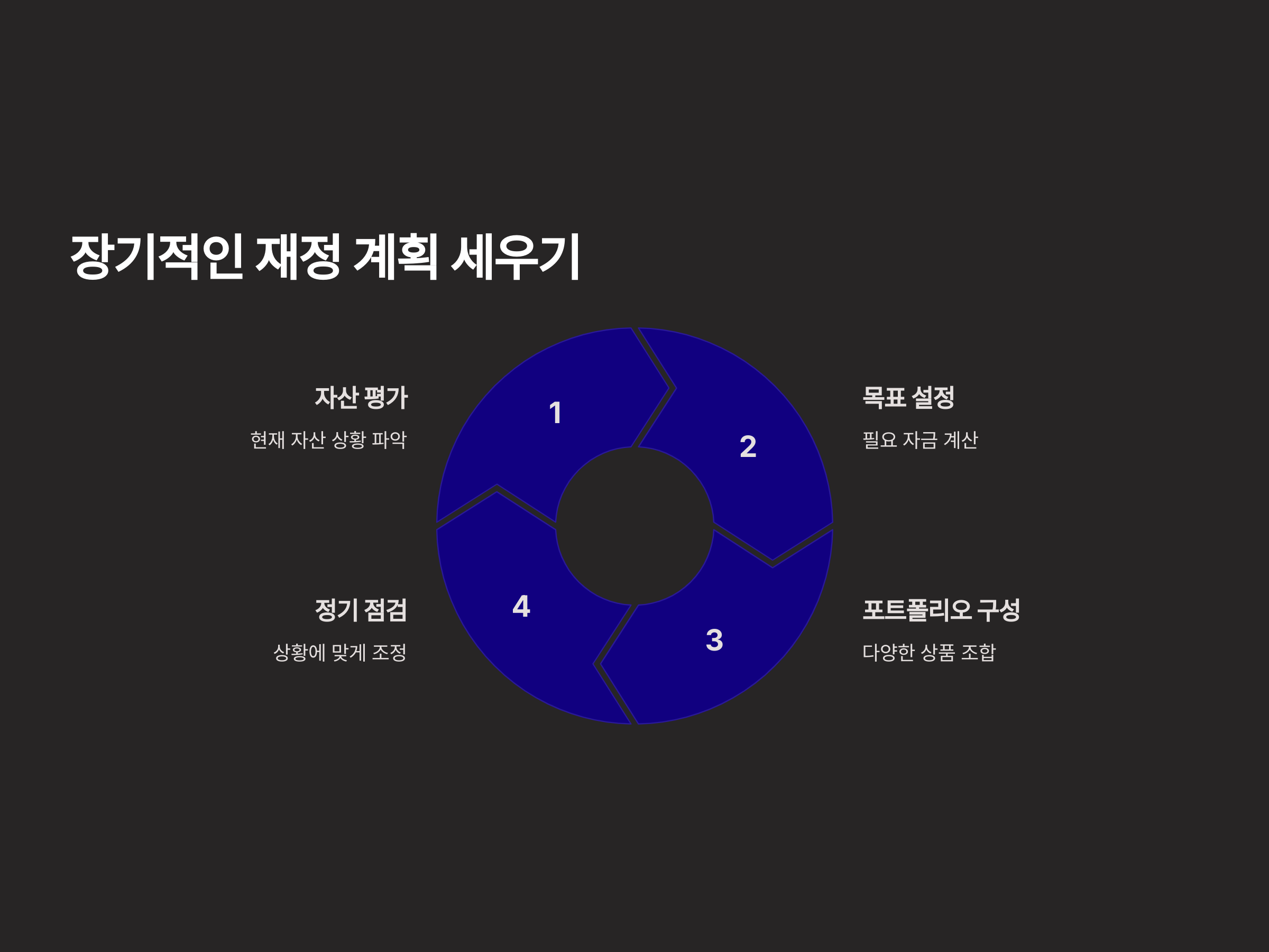 고령층이 재테크를 할 때 가장 중요한 것은 장기적인 관점에서 재정 계획을 세우는 것입니다. 저금리 시대에는 단기적인 수익을 추구하기보다는 장기적으로 자산을 증대시킬 수 있는 전략이 필요합니다. 이를 위해서는 투자 상품을 다양화하고, 리스크를 분산하는 것이 핵심입니다.