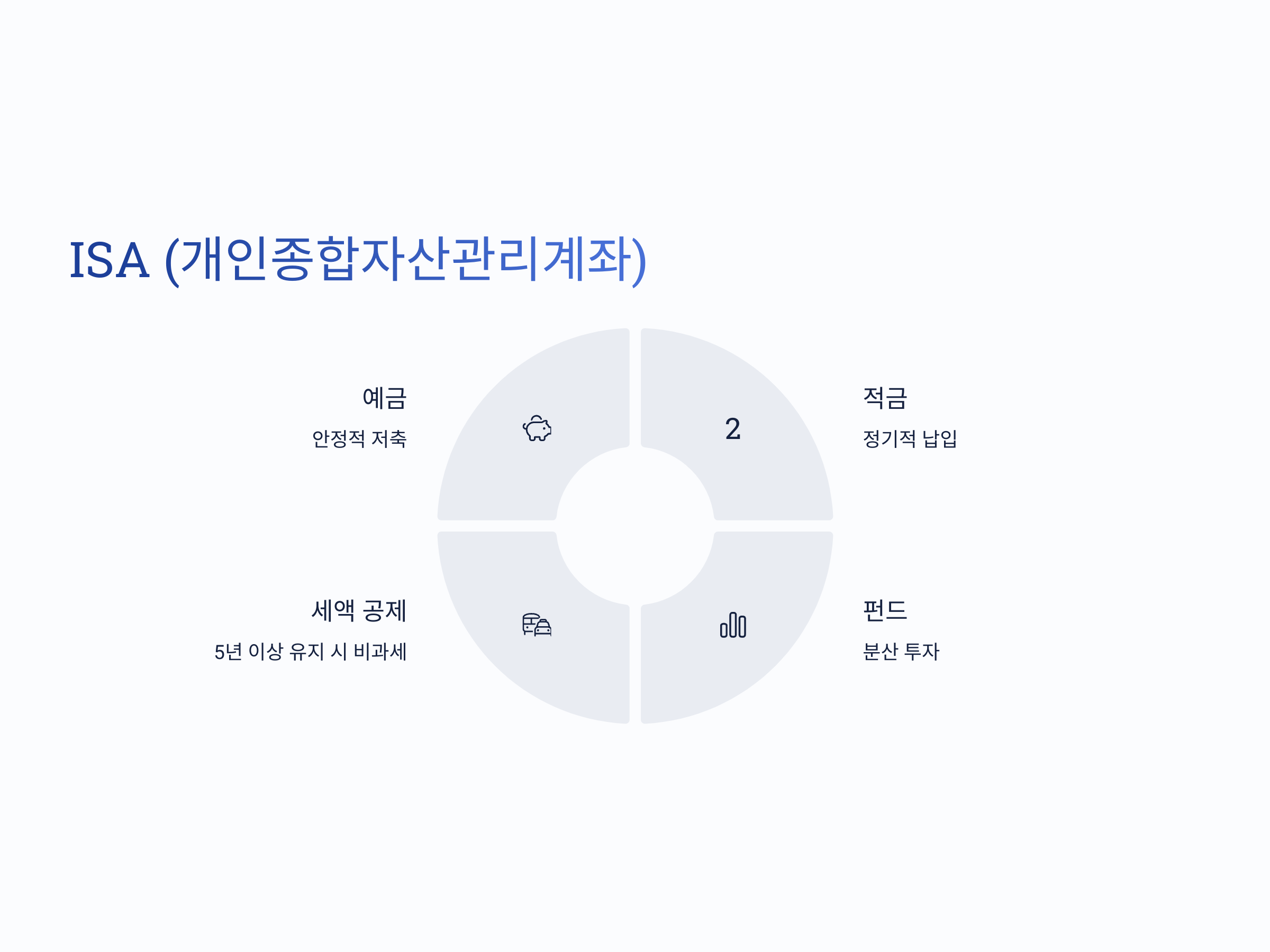 ISA는 세금 혜택을 제공하는 개인 종합 자산 관리 계좌로, 특히 금융 상품에 대한 관심이 많은 고령층에게 적합한 상품입니다. 이 계좌는 세액 공제를 통해 절세 효과를 누릴 수 있습니다. ISA 계좌에 예금, 적금, 펀드 등 다양한 금융 상품을 넣고 관리할 수 있어 자산 분산에 유리합니다.