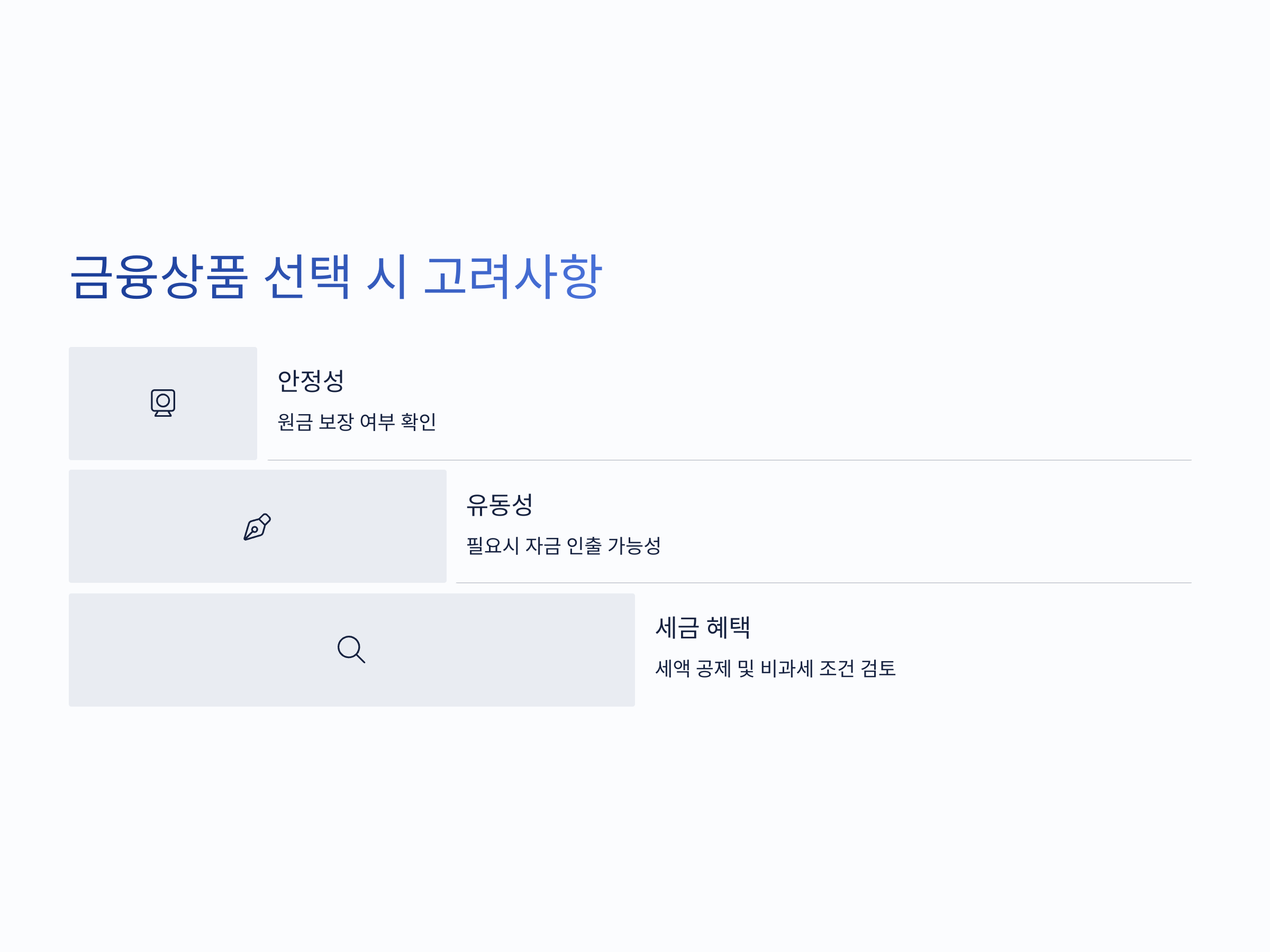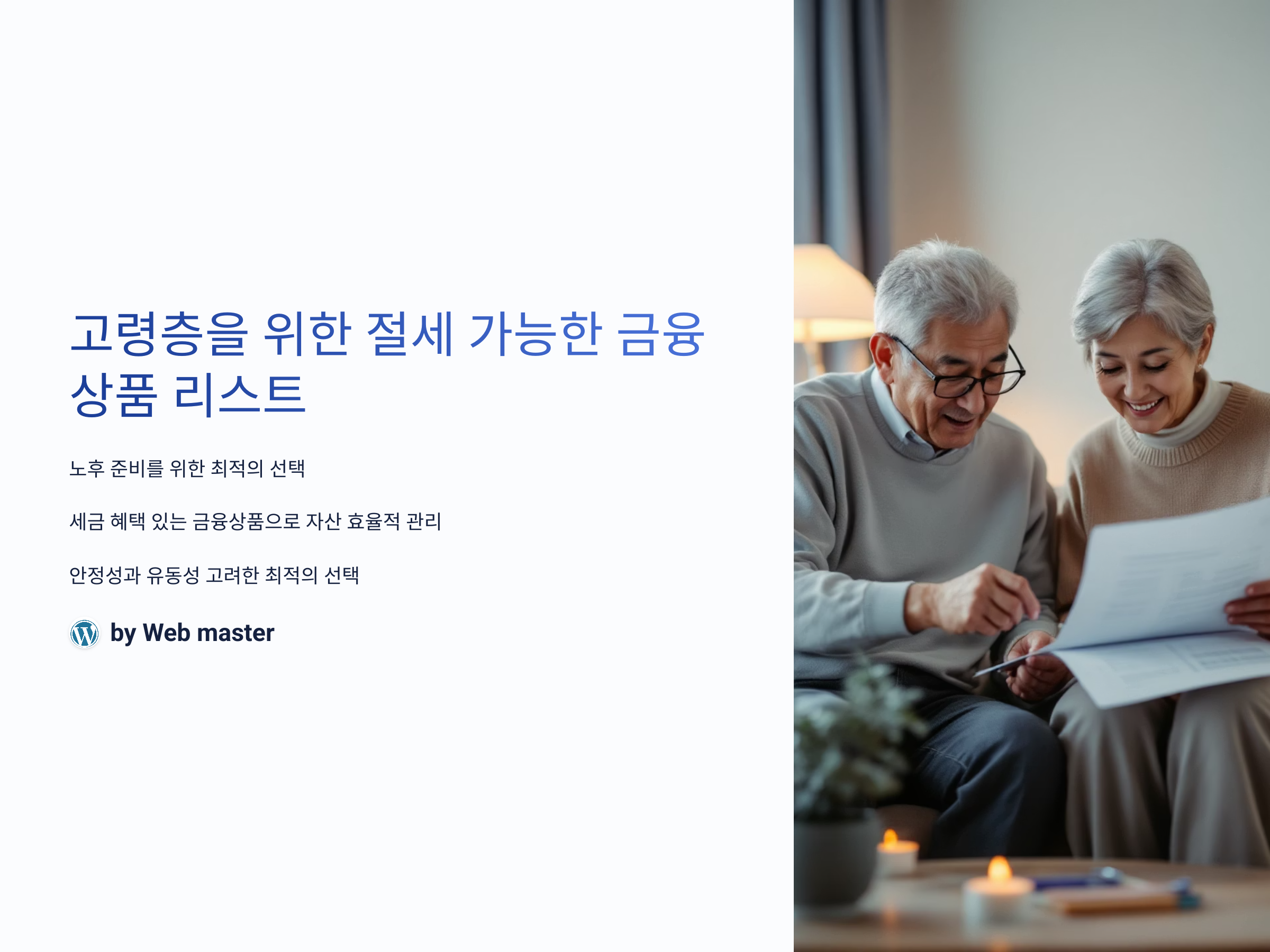 고령층을 위한 금융상품을 선택할 때, 중요한 점은 세금 혜택을 극대화하는 것과 더불어 안정성과 유동성을 고려하는 것입니다. 아래에서 소개하는 금융상품들은 절세뿐만 아니라, 고령층이 편안하게 노후를 준비할 수 있도록 돕는 최적의 선택이 될 것입니다.
