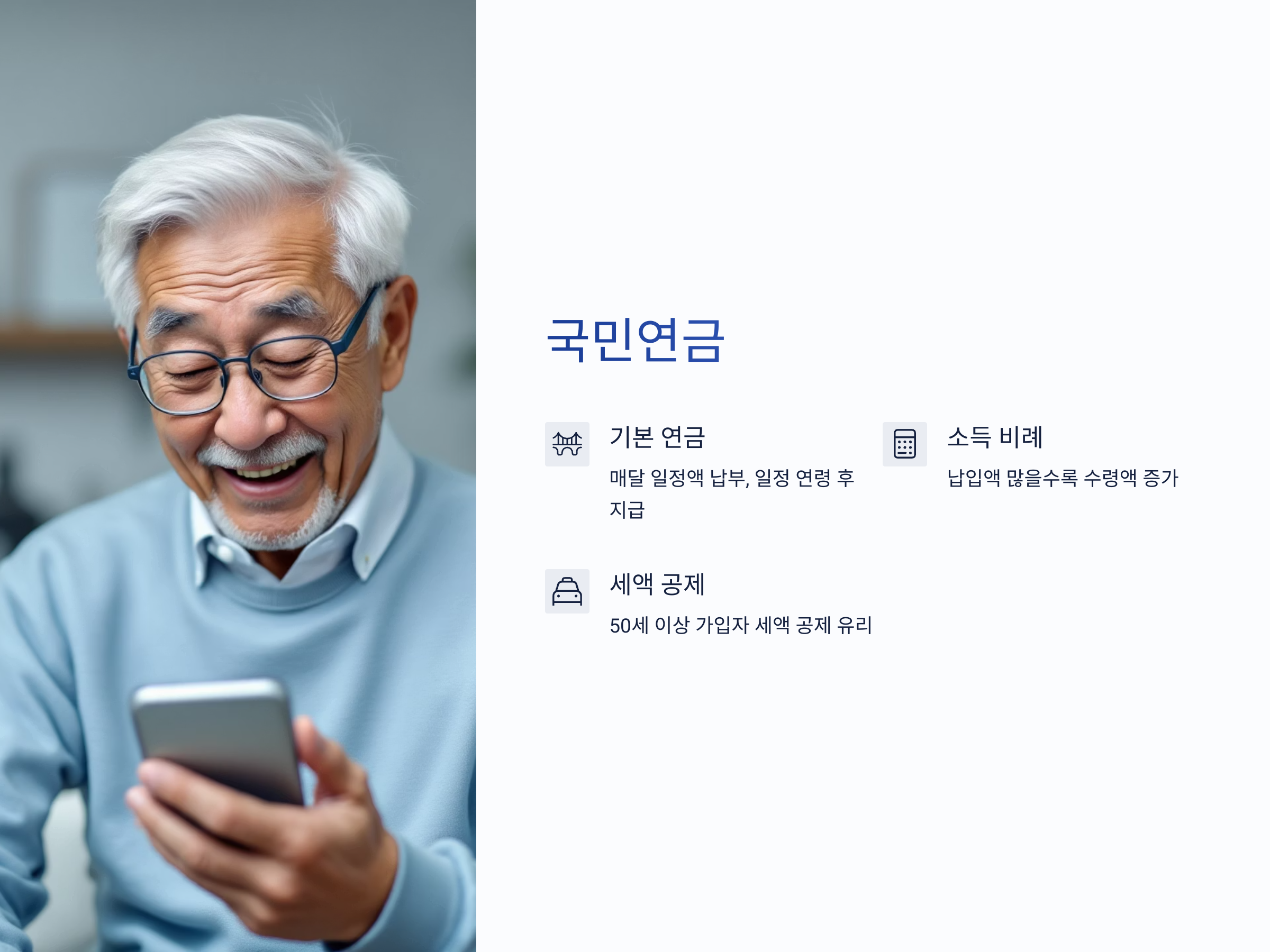 국민연금은 고령층에게 가장 기본적이고 중요한 금융상품입니다. 국민연금은 가입자가 매달 일정액을 납부하여, 일정 연령이 되면 월급처럼 지급받는 연금 제도입니다. 이 연금은 소득에 비례하여 지급되므로, 납입액이 많을수록 받을 수 있는 금액이 커지며, 일정 기간 이상 납입하면 세금 혜택도 받을 수 있습니다.
