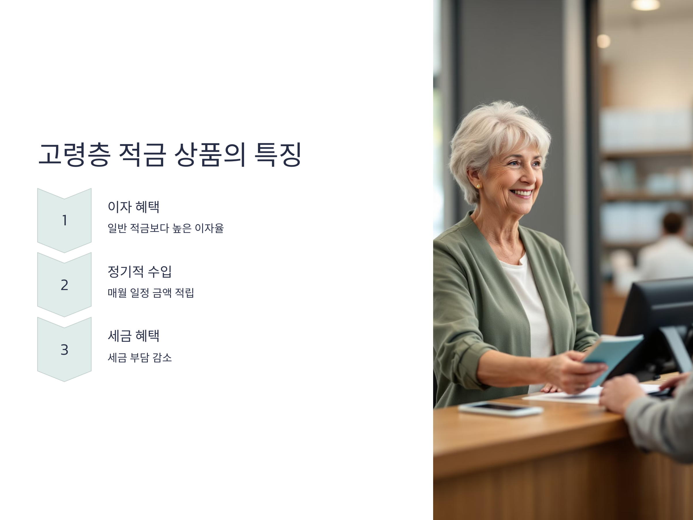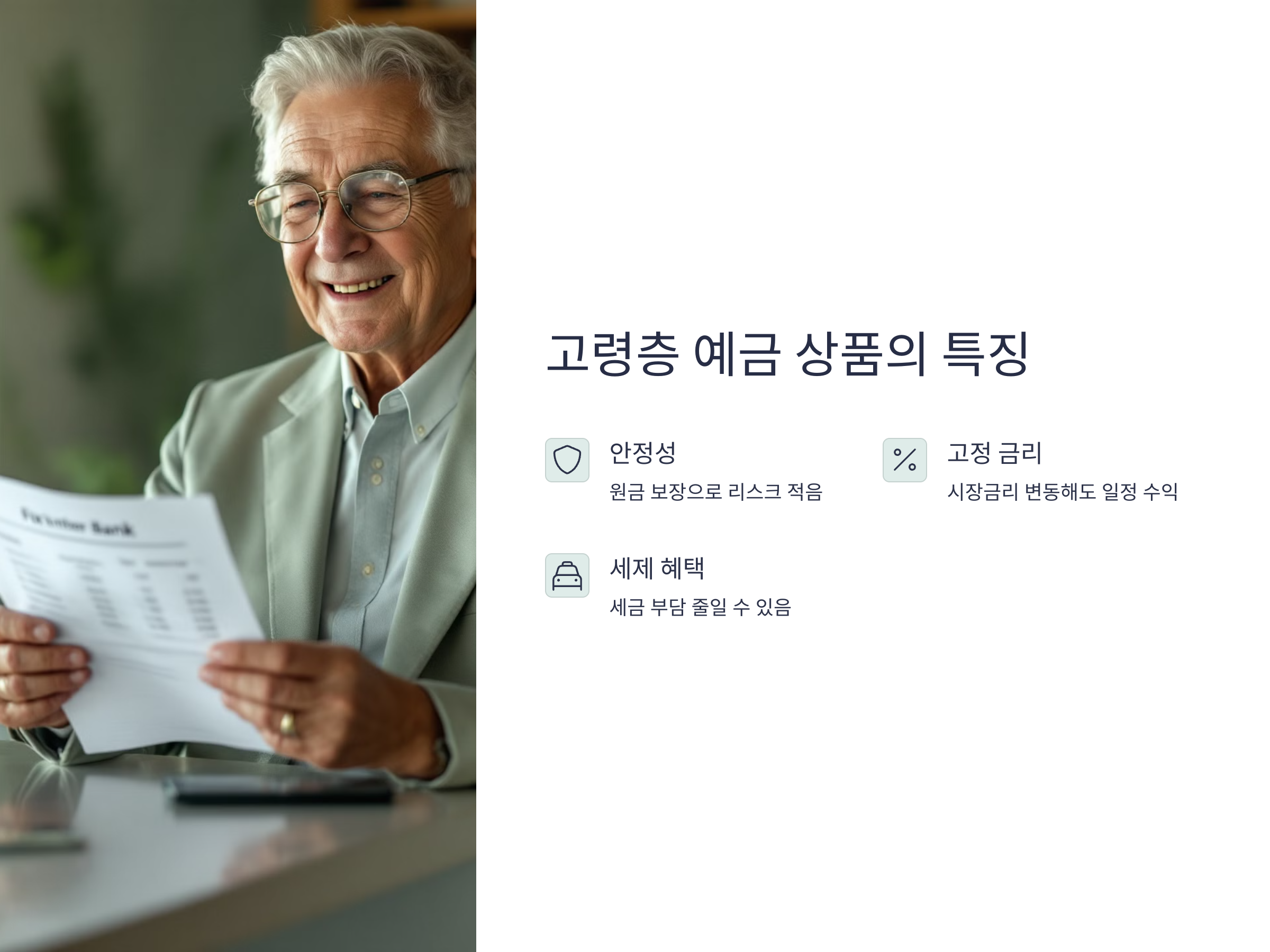 - 세제 혜택: 고령층 예금 상품은 세제 혜택이 제공되는 경우가 많아, 세금 부담을 줄일 수 있습니다.