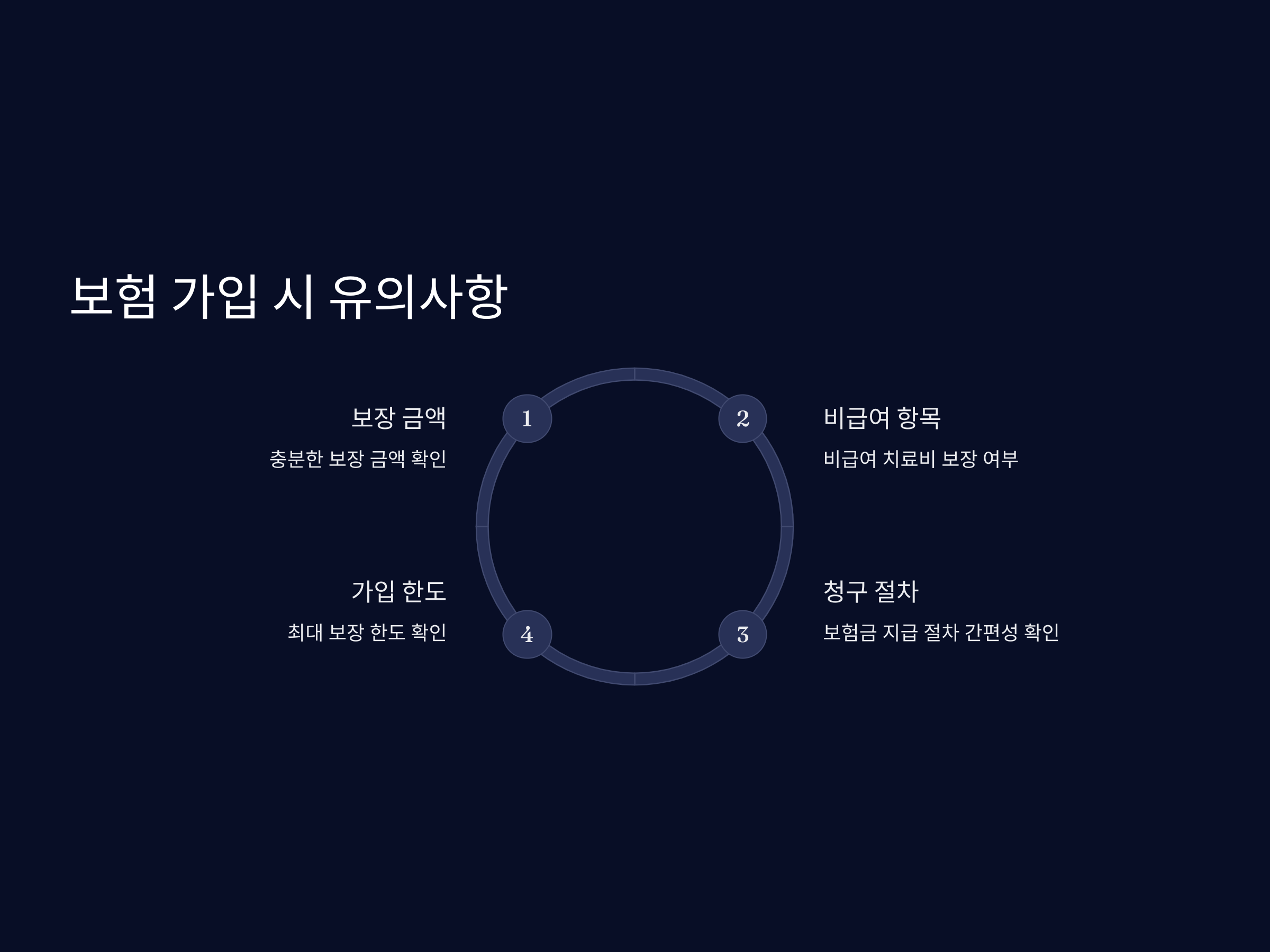 고령층이 건강보험에 가입할 때 보험 가입 한도나 보장 금액도 중요한 요소입니다. 예를 들어, 급여 항목 외에도 비급여 항목의 보장 여부를 확인하여, 필요할 경우 비급여 치료비도 충분히 보장 받을 수 있는지 점검하는 것이 필요합니다. 또한, 보험금 지급 절차가 간편한지, 청구 절차가 복잡하지 않은지도 중요한 고려사항입니다.