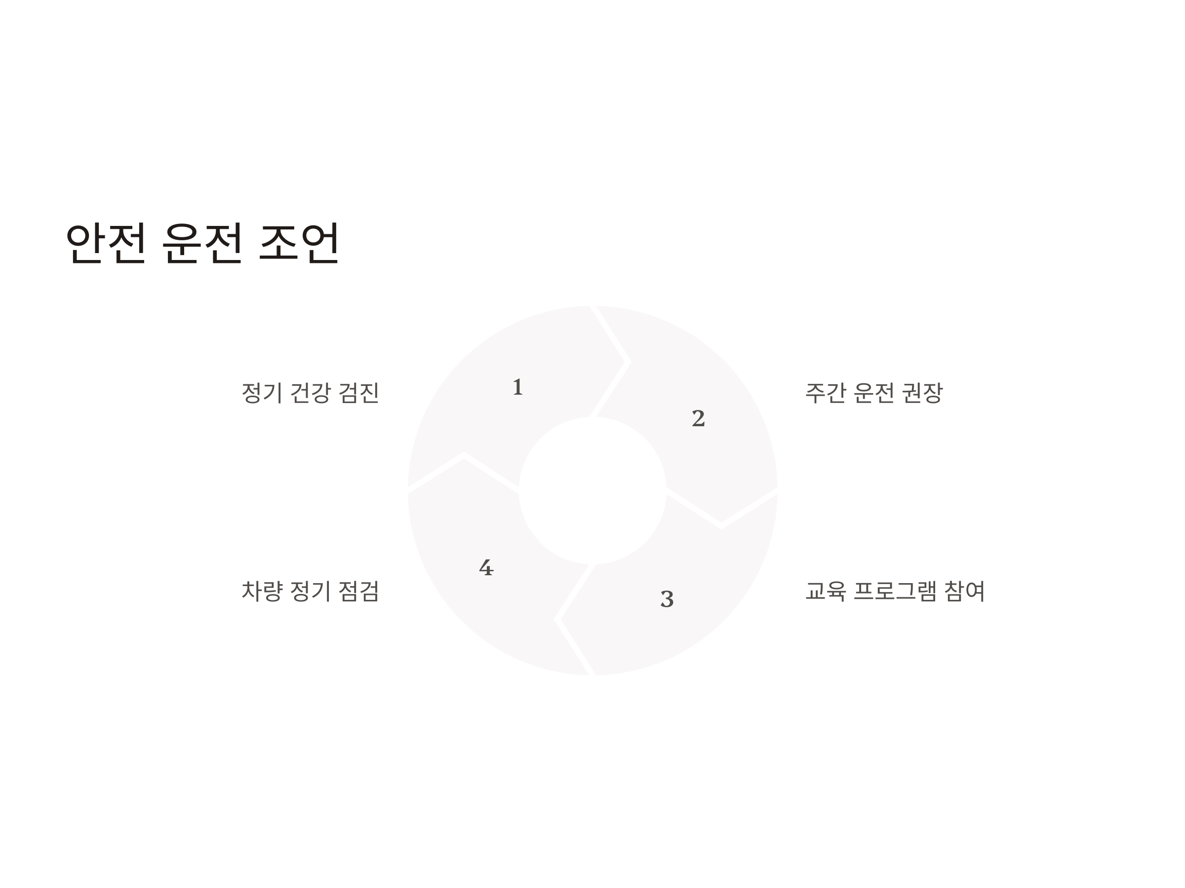 - 정기적인 건강 검진: 운전에 필요한 신체 능력을 유지하기 위해 정기적인 건강 검진을 받으세요.