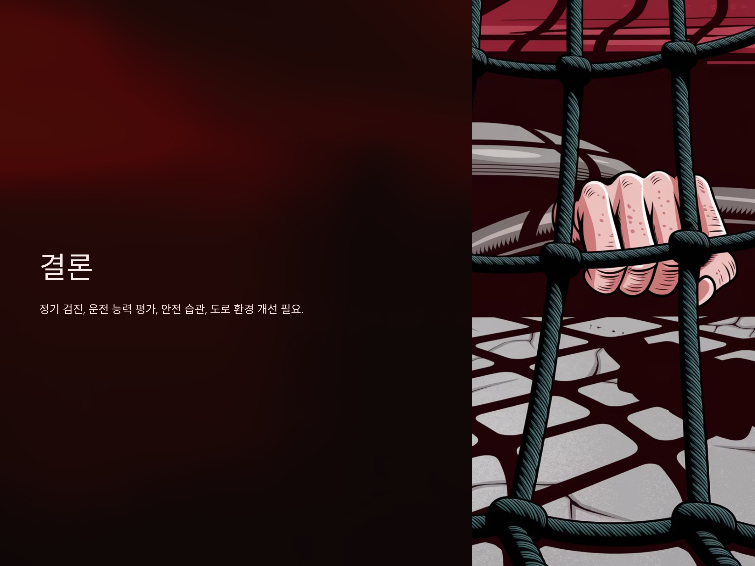 고령 운전자는 나이가 들어감에 따라 다양한 신체적 변화를 겪게 됩니다. 하지만 적절한 예방 조치와 안전한 운전 습관을 통해 교통사고를 예방할 수 있습니다. 또한, 도로 환경의 개선과 함께 고령 운전자가 안전하게 운전할 수 있는 환경을 만들어가는 것이 중요합니다. 고령 운전자의 안전을 위한 노력은 모두의 삶의 질을 높이는 데 기여할 수 있습니다