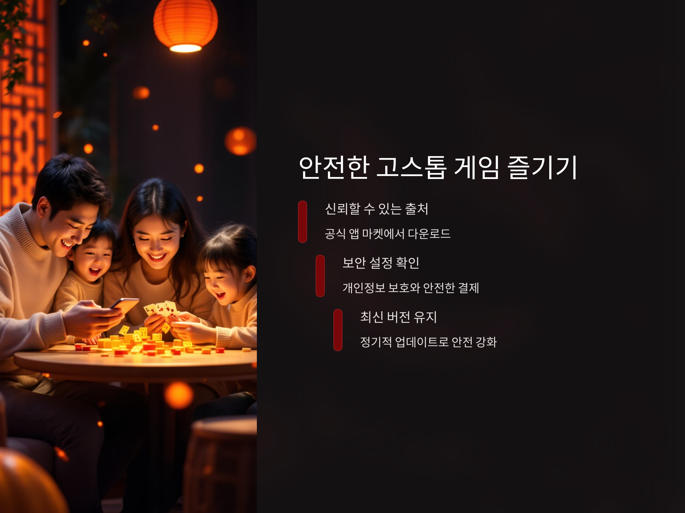 예를 들어, 구글 플레이 스토어나 애플 앱스토어와 같은 공식 앱 마켓에서 제공하는 고스톱 게임은 보안 검사와 인증을 거쳐 배포되므로, 비교적 안전하게 다운로드하고 플레이할 수 있습니다. 게임을 다운로드할 때, 사용자의 리뷰나 평점을 참고하여 신뢰할 수 있는 게임인지 확인하는 것도 좋은 방법입니다.