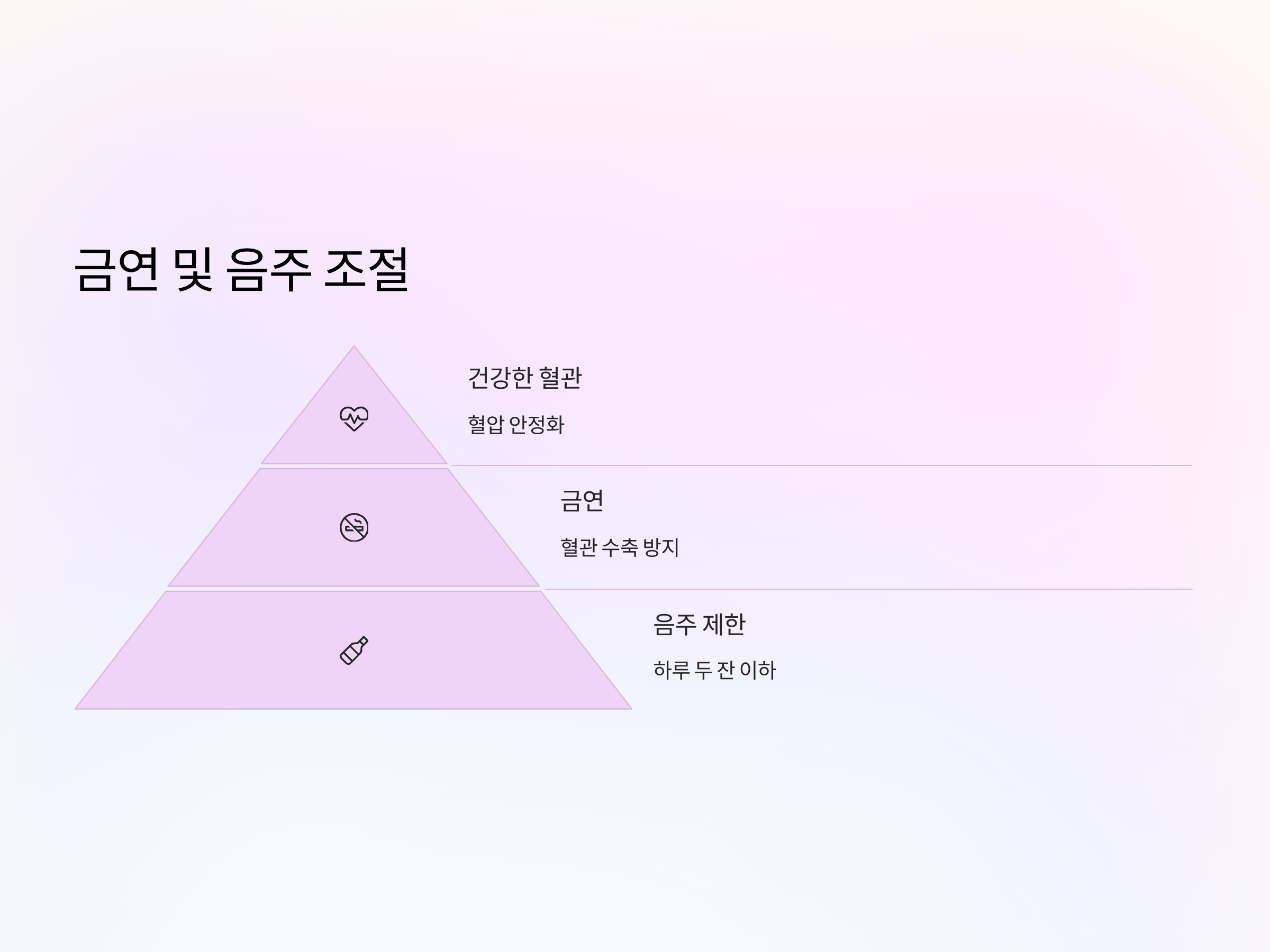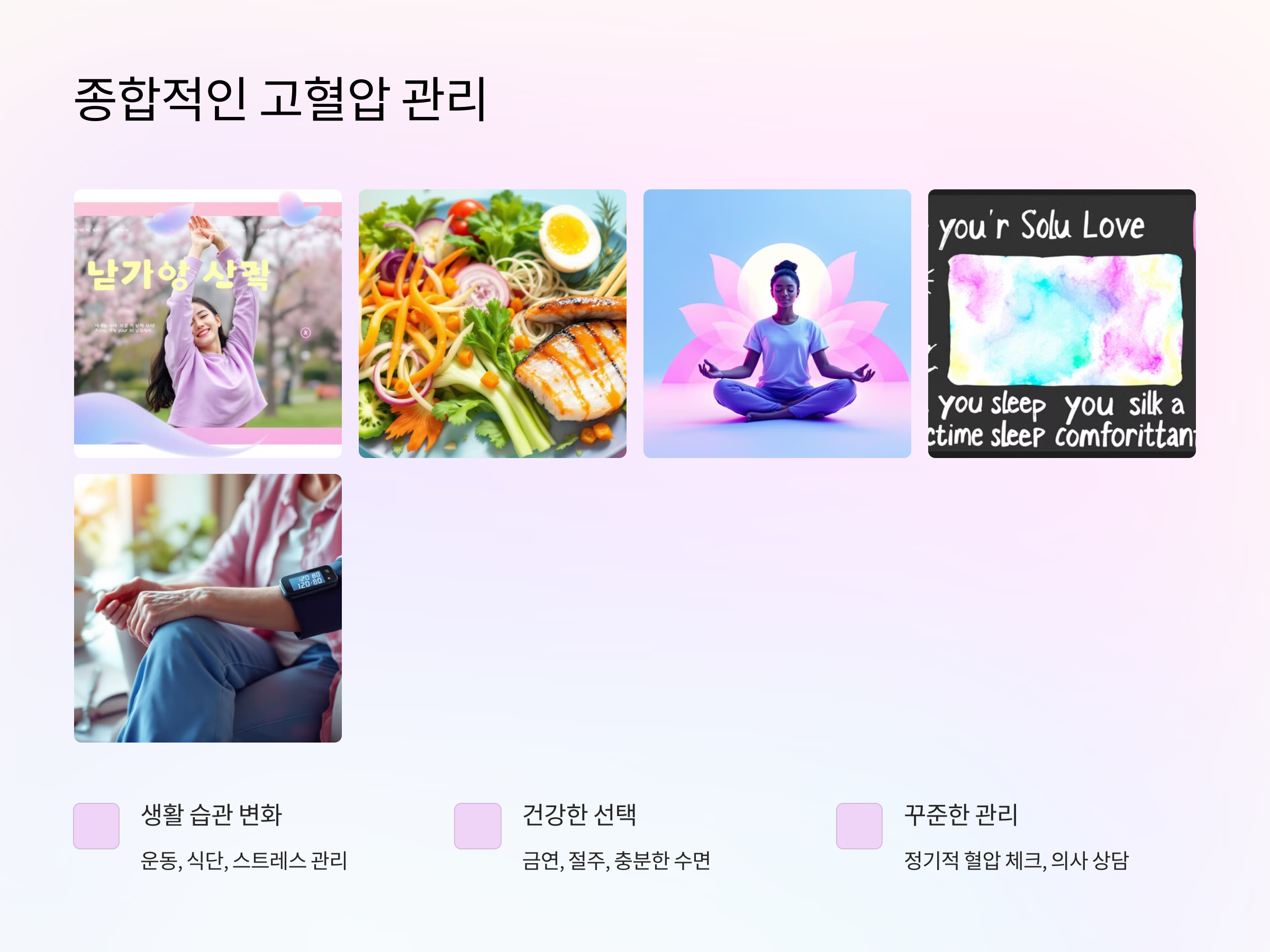 수면의 질도 중요합니다. 불면증이나 중간에 자주 깨는 수면 패턴은 혈압을 높일 수 있기 때문에 규칙적인 수면 습관을 유지하는 것이 중요합니다. 잠자기 전에는 전자기기 사용을 줄이고, 침실 환경을 편안하게 만들어 깊은 수면을 유도하는 것이 좋습니다.