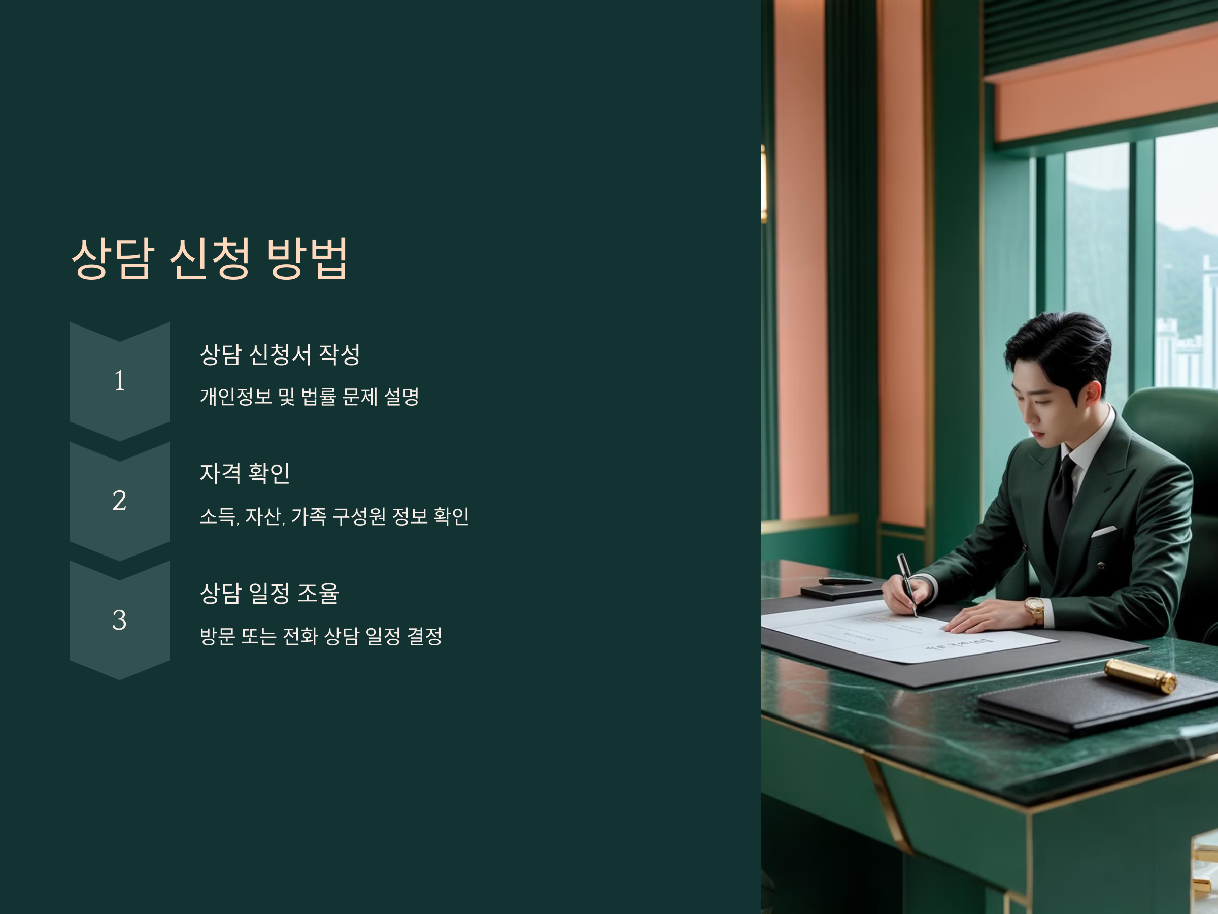 무료 법률 상담을 받기 위해서는 각 기관에서 요구하는 절차를 따라야 합니다. 여기서는 신청 방법을 단계별로 설명해 드리겠습니다.
