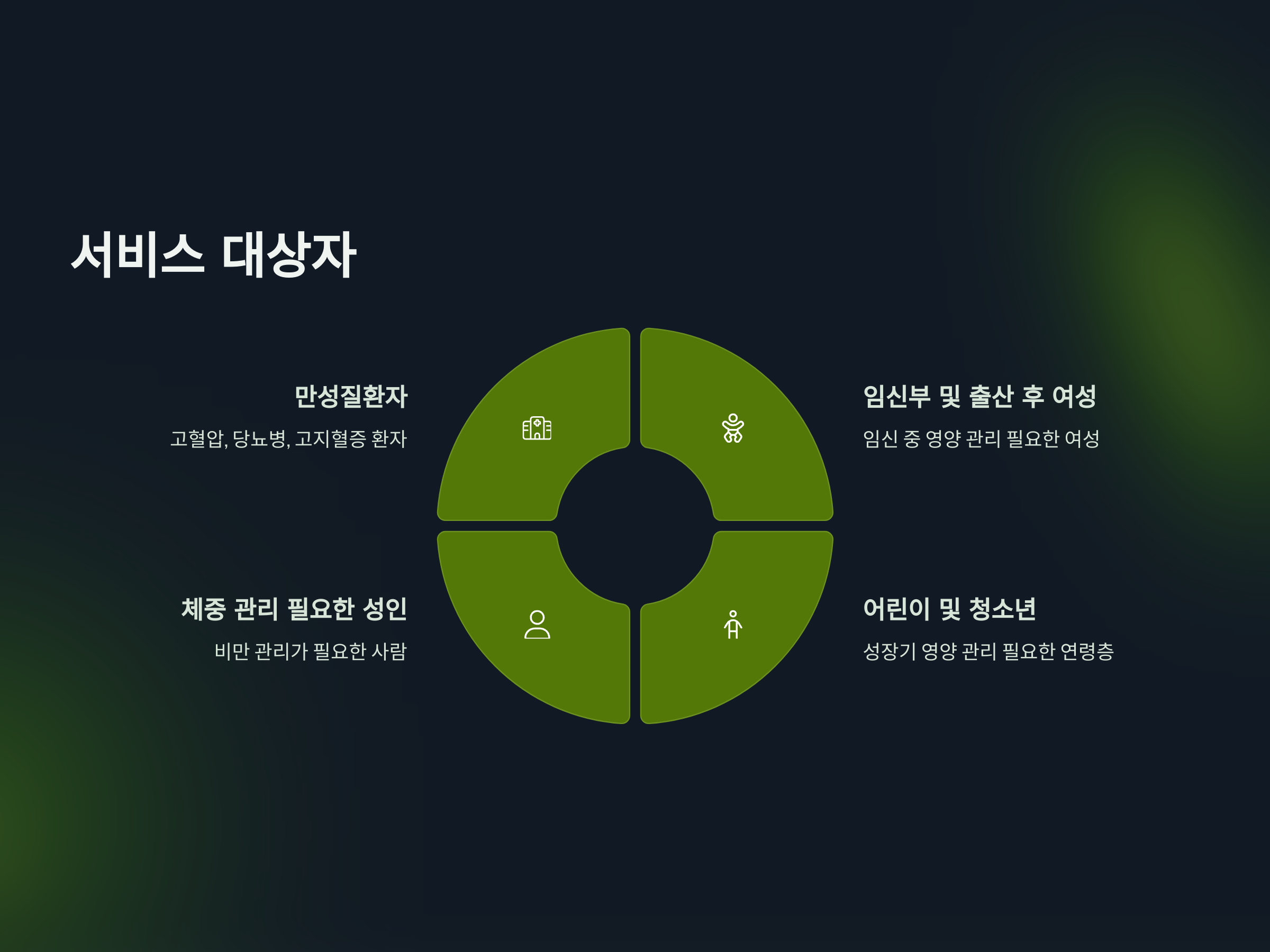 - 어린이 및 청소년: 성장기에 맞는 영양 상태 관리가 필요한 어린이와 청소년