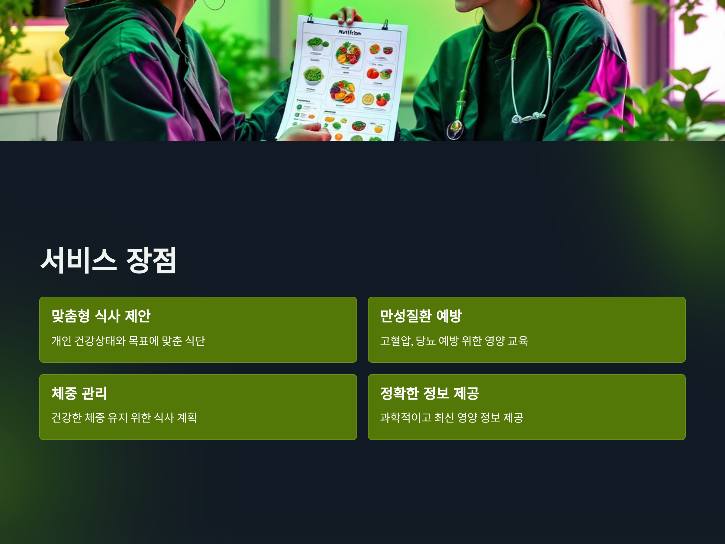 - 만성질환 예방: 고혈압, 당뇨 등의 만성질환 예방을 위한 영양 교육