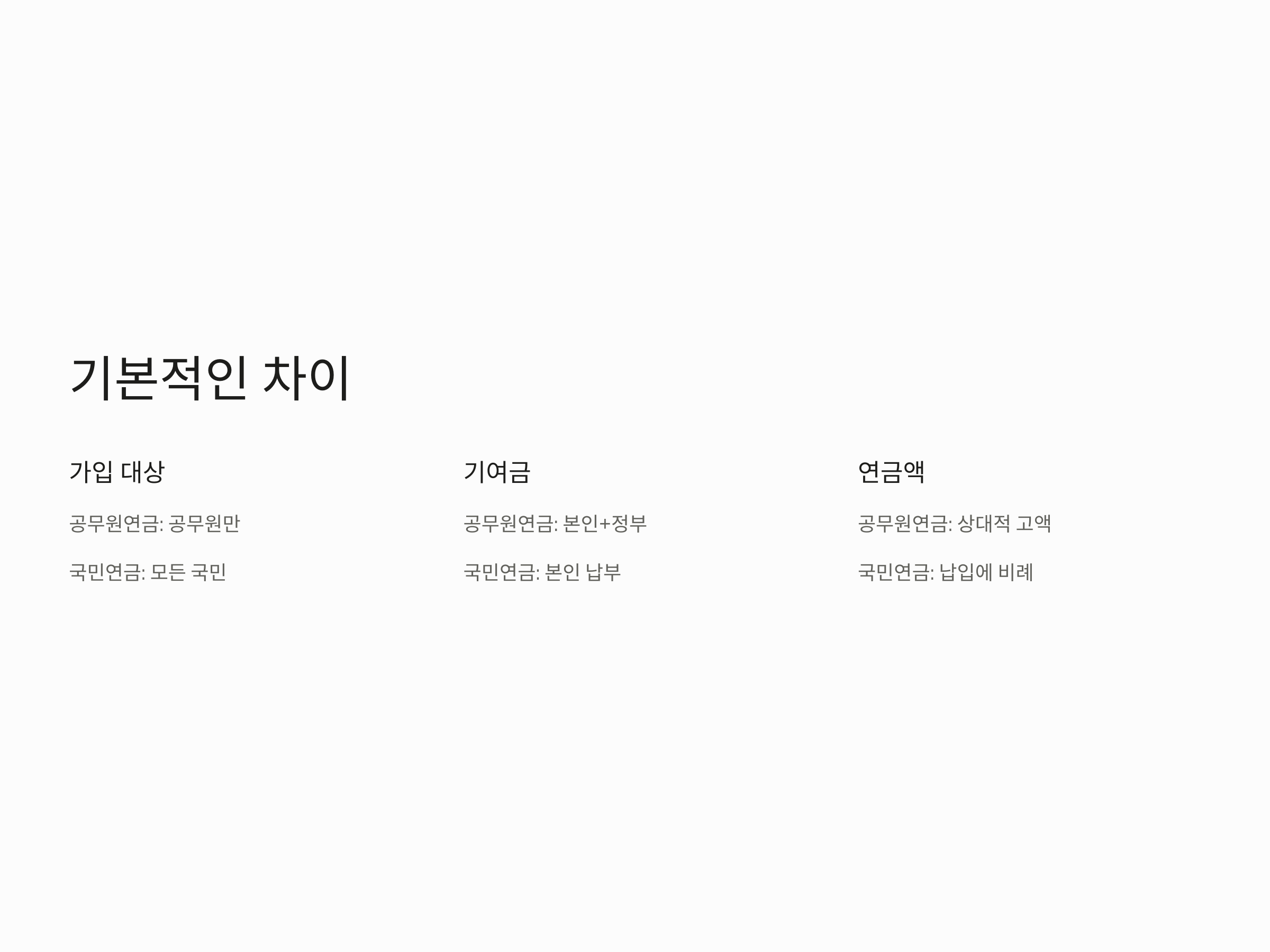 공무원연금과 국민연금의 기본적인 차이