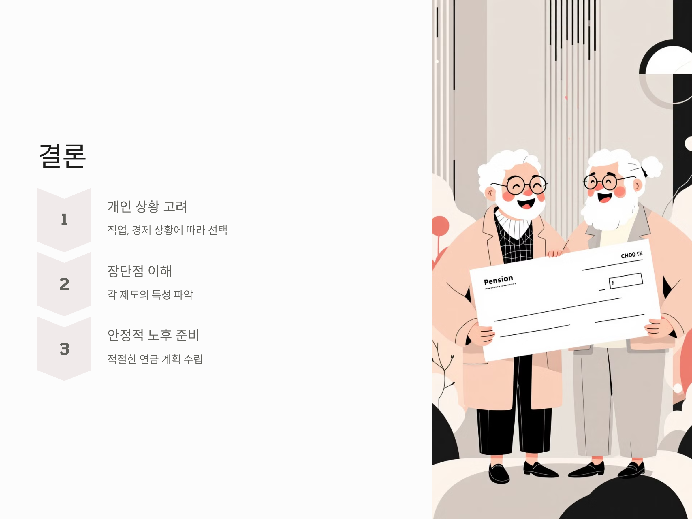 결국, 공무원연금과 국민연금의 선택은 개인의 직업과 경제적 상황에 따라 달라집니다. 공무원이라면 고액의 연금 혜택을 누릴 수 있는 공무원연금이 유리하고, 일반 직장인이라면 국민연금이 더 현실적인 선택일 수 있습니다. 두 연금 모두 각자의 장단점이 있기 때문에, 본인의 상황에 맞춰 가장 적합한 제도를 선택하는 것이 중요합니다.
