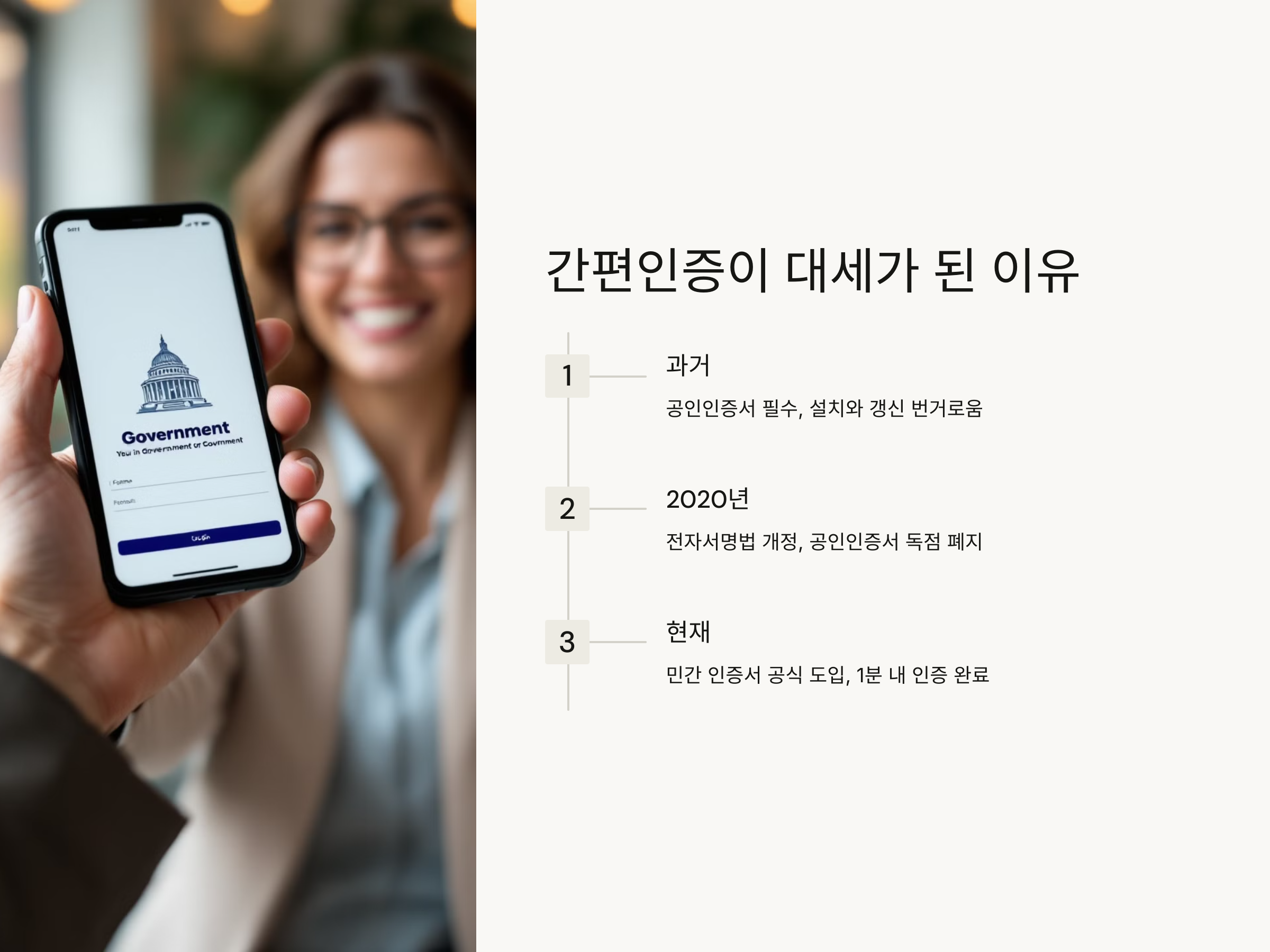 공공기관 홈페이지에 로그인할 때 예전에는 반드시 공인인증서가 필요했습니다. 인증서를 PC나 스마트폰에 설치해야 했고, 만료 시 갱신도 번거로웠습니다. 하지만 지금은 전혀 다릅니다. 2020년 전자서명법 개정 이후 공인인증서의 독점이 폐지되었고, 민간 인증서가 공식적으로 공공서비스에 적용되기 시작했습니다. 특히 정부는 디지털정부혁신의 일환으로 디지털 격차를 줄이기 위해 다양한 인증 수단을 공공기관에 도입했습니다.