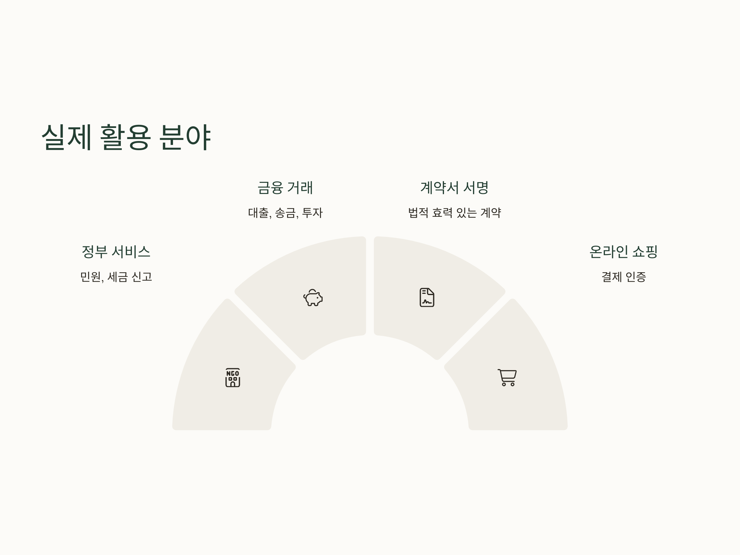 전자서명은 이미 다양한 분야에서 실제로 사용되고 있습니다. 가장 큰 변화는 정부 서비스, 온라인 쇼핑, 금융 거래 등에서 점점 더 널리 확산되고 있다는 점입니다.