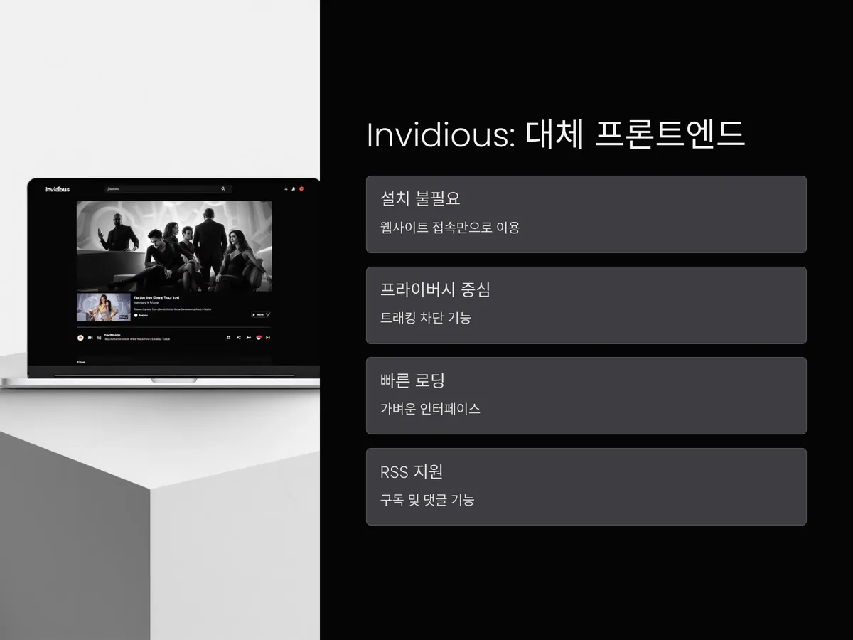 Invidious는 유튜브의 영상만 가져와 자체 UI로 제공하는 프라이버시 중심의 대체 프론트엔드입니다. 설치 없이 웹사이트에 접속만 하면 광고 없이 유튜브 콘텐츠를 시청할 수 있어 매우 간편합니다.