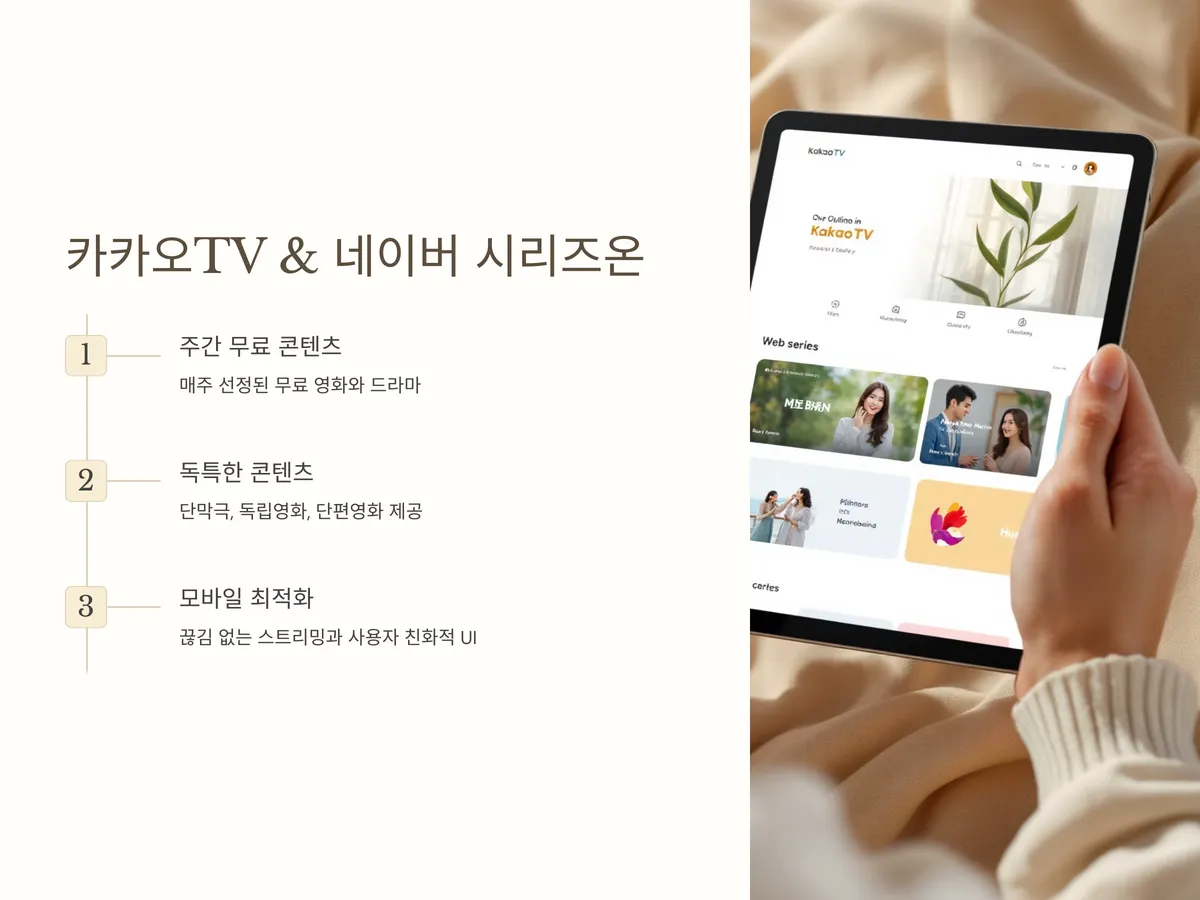 카카오TV나 네이버 시리즈온에서는 매주 또는 월별로 선정된 무료 영화와 드라마를 제공합니다. 특히 단막극, 시즌제 콘텐츠, 독립영화, 단편영화 같은 접근하기 어려운 콘텐츠도 종종 공개되어 색다른 경험을 할 수 있습니다. 특히 모바일에 최적화된 UI와 끊김 없는 스트리밍은 강력한 장점 중 하나입니다.
