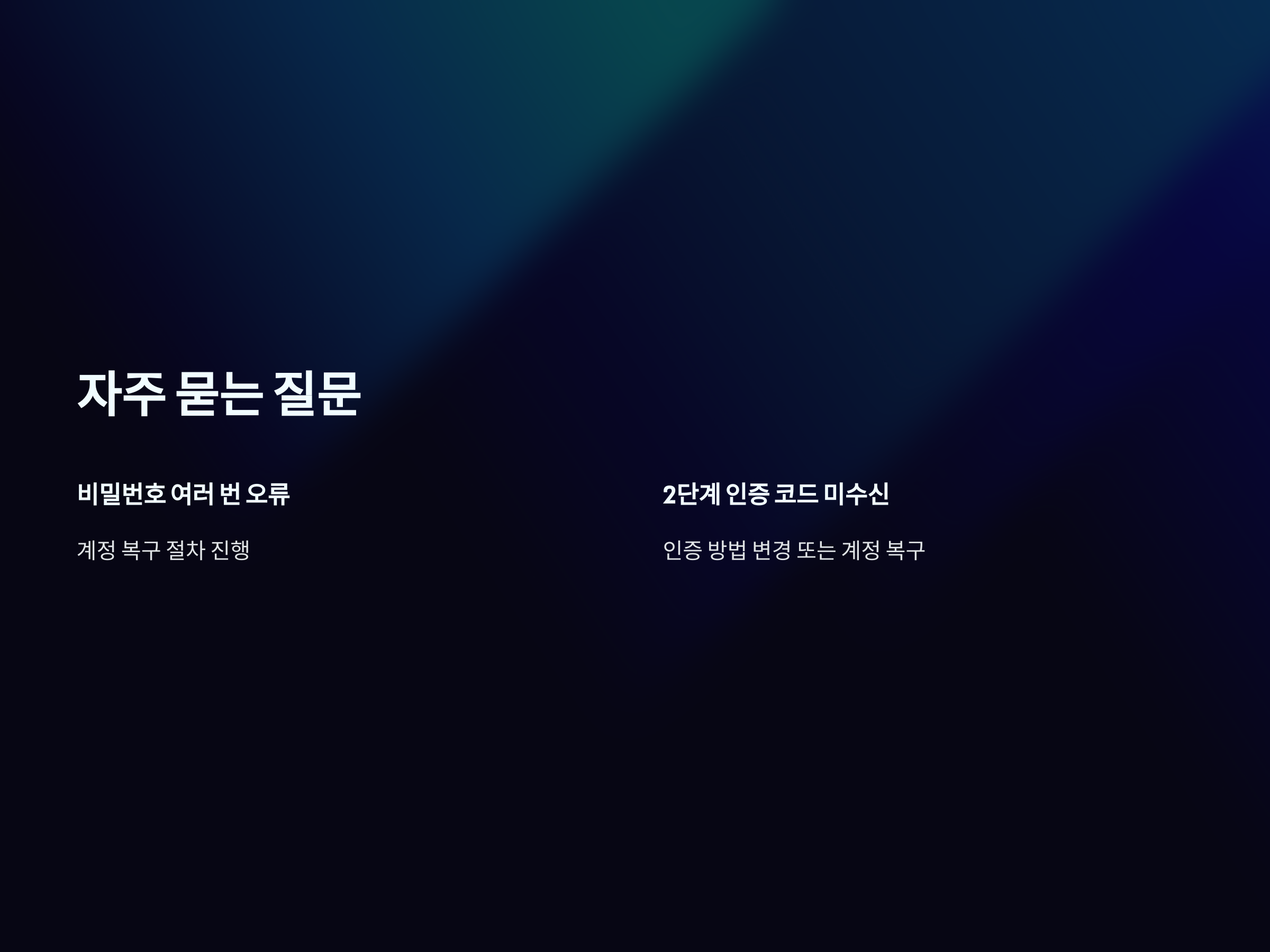 Q2: 2단계 인증 코드가 안 올 때는 어떻게 하나요?