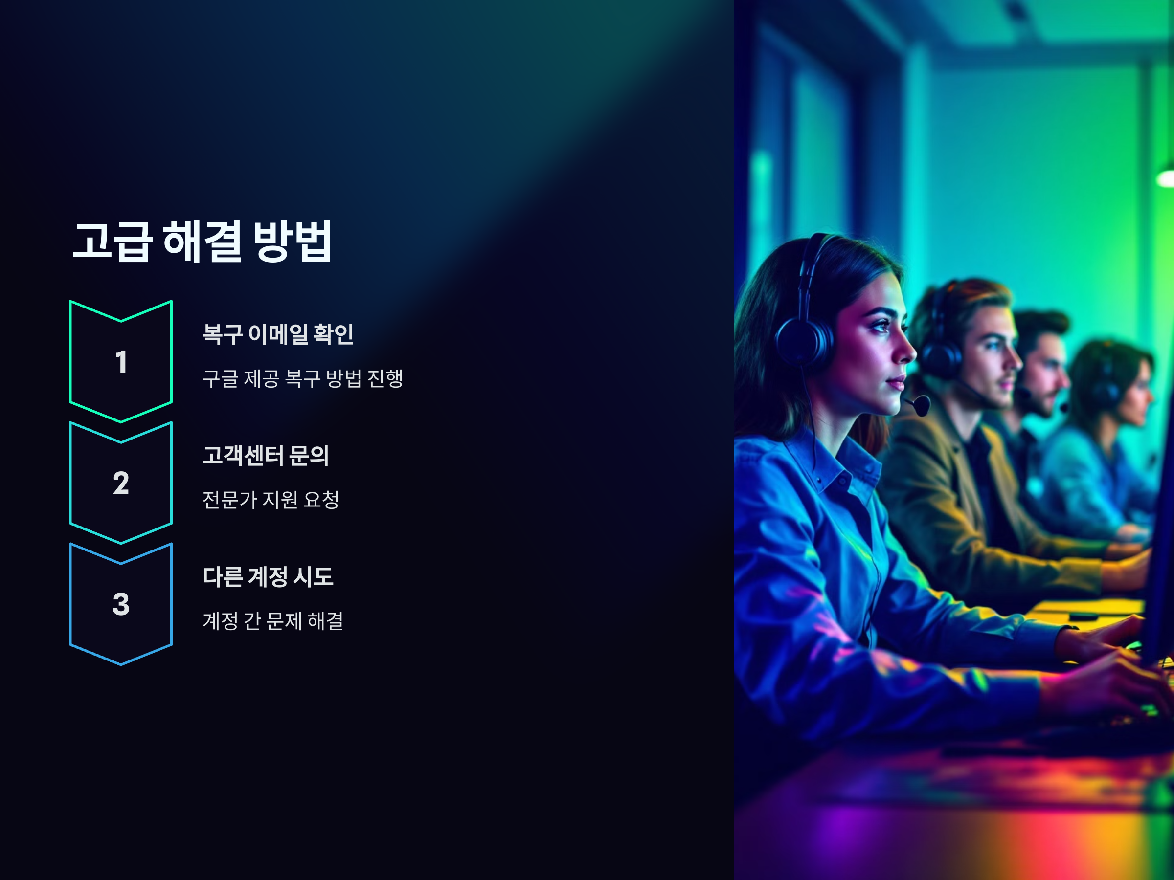 구글 계정이 잠긴 이유가 불명확하거나, 복구가 어렵다면 구글 고객센터에 문의하여 추가 지원을 요청할 수 있습니다. 구글 고객센터는 복잡한 로그인 문제를 해결할 수 있는 전문가가 있으므로, 이를 통해 문제를 해결할 수 있습니다.
