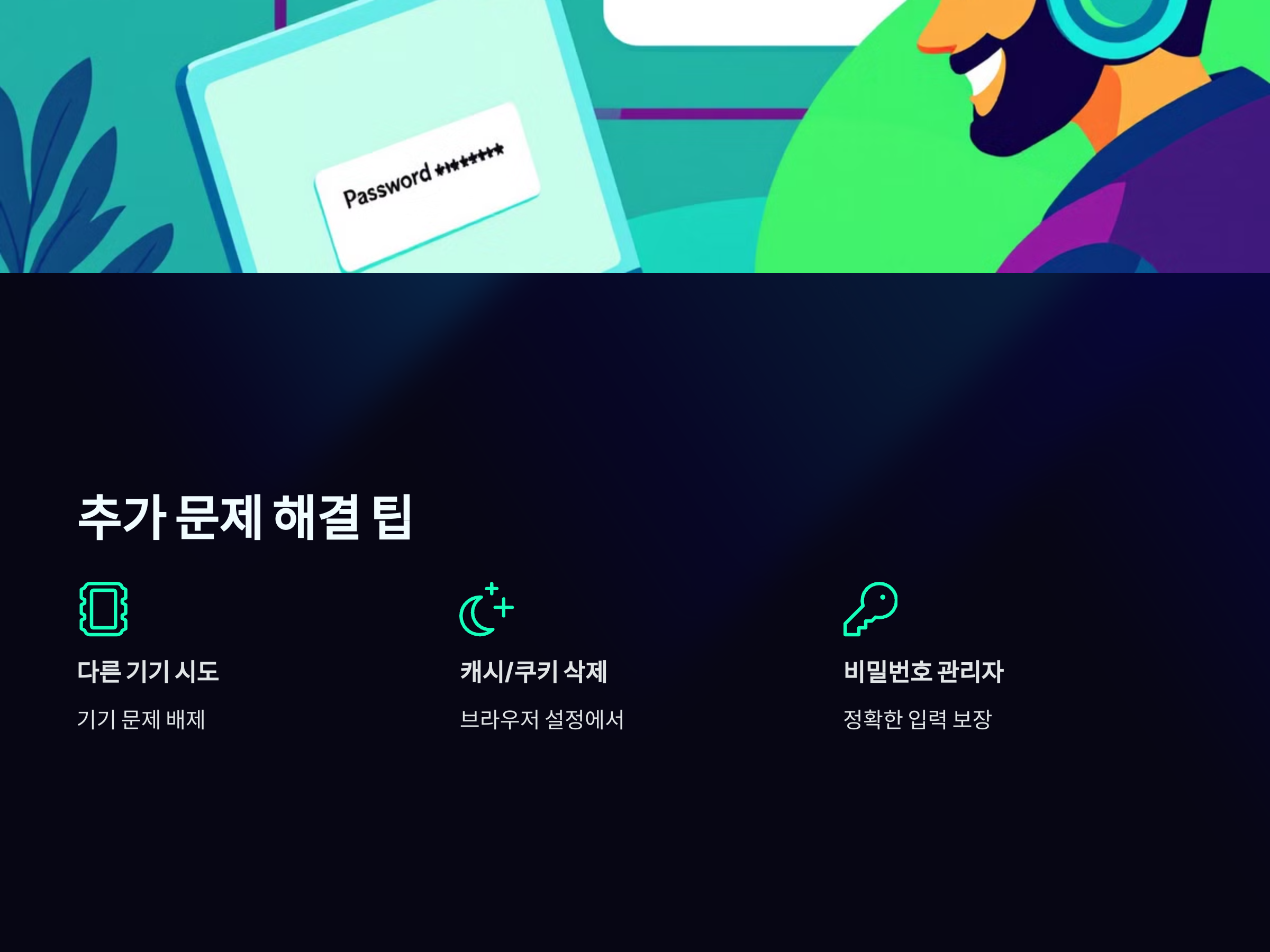 웹 브라우저에 저장된 캐시와 쿠키가 문제를 일으킬 수 있습니다. 브라우저 설정에서 캐시와 쿠키를 삭제한 후 다시 시도해 보세요. 이를 통해 로그인 문제를 해결할 수 있는 경우가 많습니다.