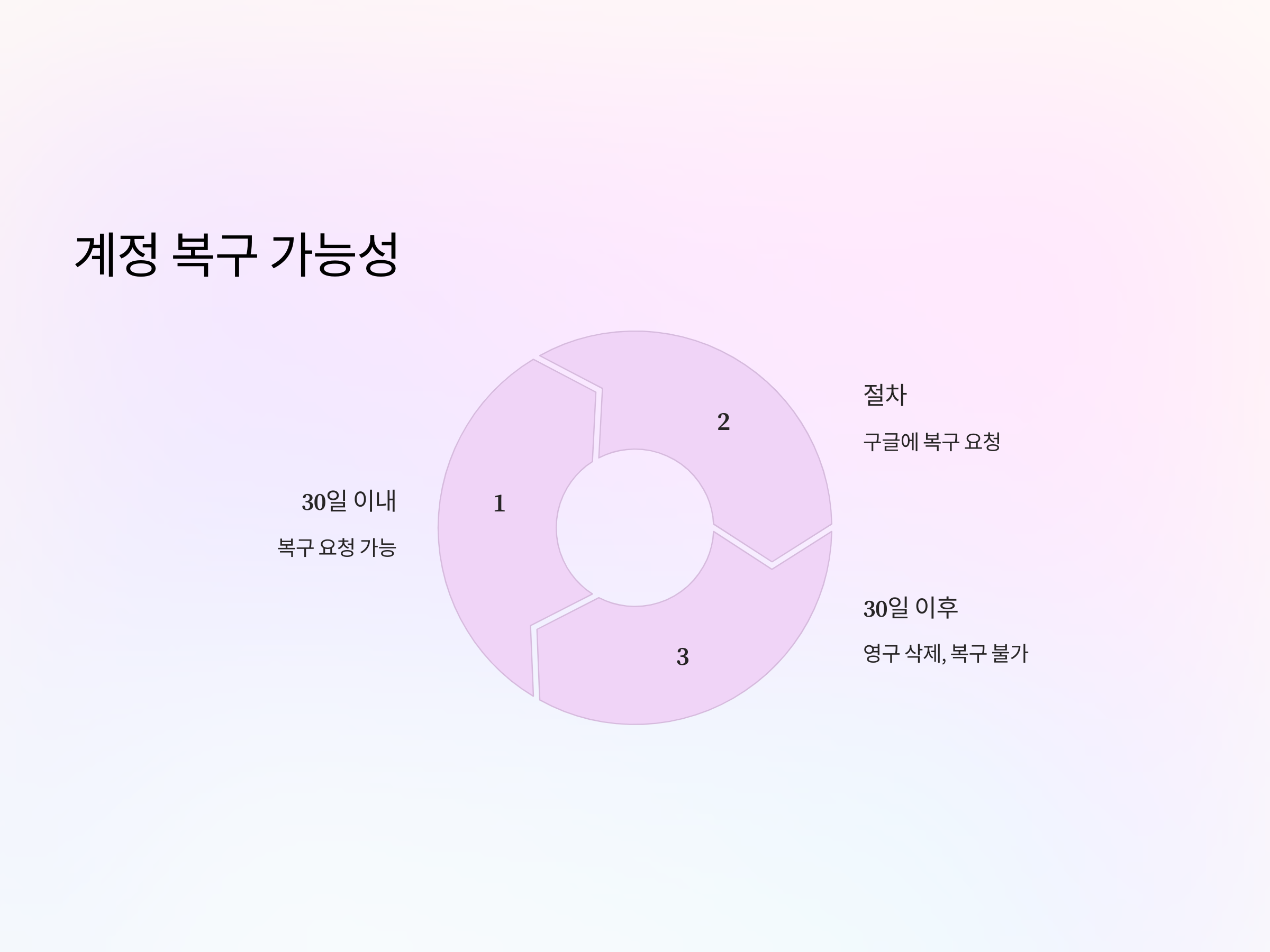 구글에서는 계정 삭제 요청 후 30일 이내에 계정을 복구할 수 있는 기회를 제공합니다. 이 기간 내에 구글 계정 복구를 요청하면, 구글이 복구 절차를 진행할 수 있습니다. 하지만 30일이 지난 후에는 복구가 불가능하므로, 계정 삭제 결정을 내리기 전에 충분히 생각해보는 것이 중요합니다.