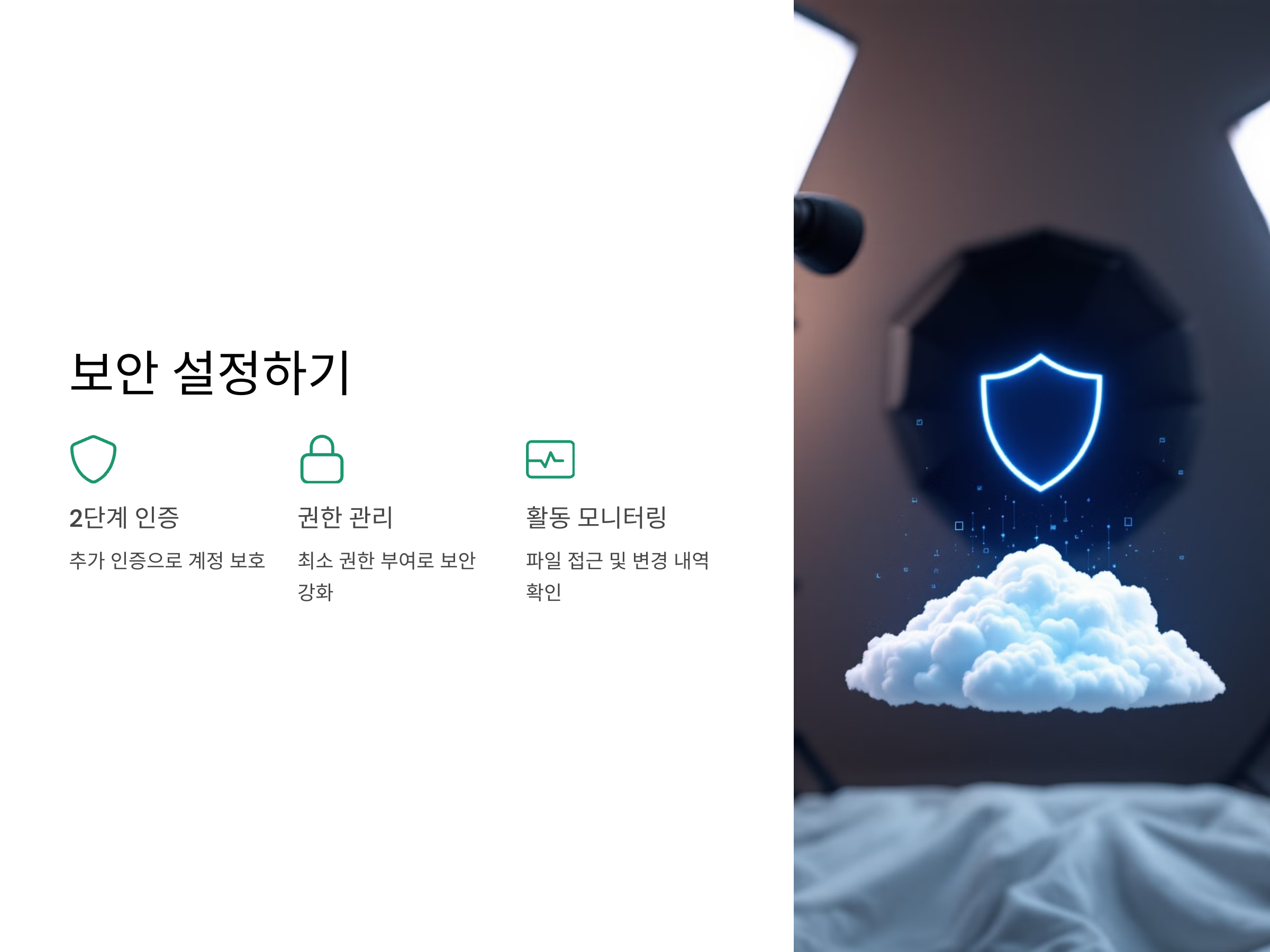 - 공유 권한 관리: 파일이나 폴더를 공유할 때 최소한의 권한만 부여하고, 불필요한 공유는 해제하여 보안을 유지합니다.