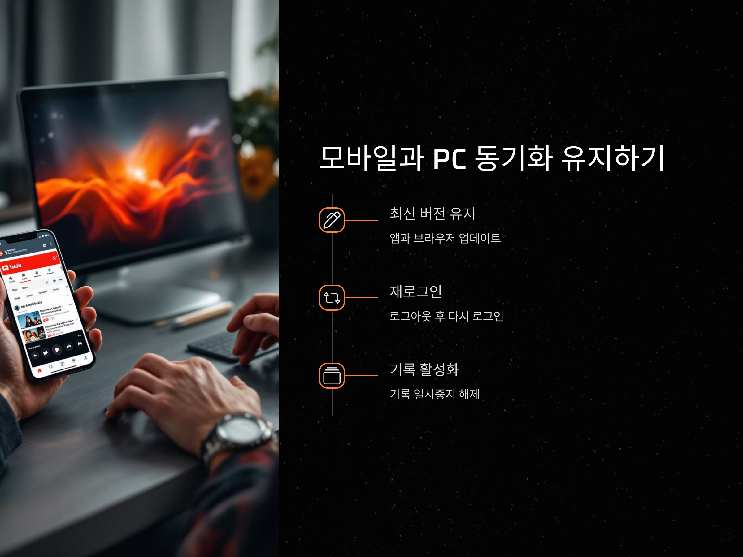 유튜브의 알림 설정은 계정 기반으로 저장되기 때문에, 모바일에서 설정한 내용은 PC에도 반영됩니다. 하지만 간혹 동기화가 지연되거나 누락되는 경우가 생기는데요, 이럴 땐 다음 팁을 참고하세요.